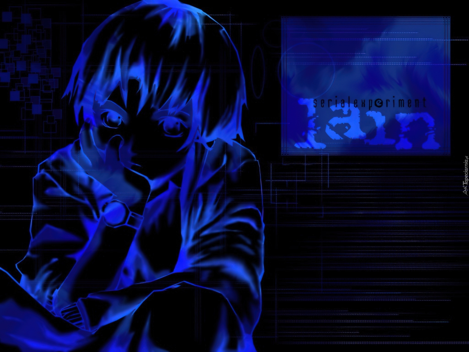 Edytor tapety: Serial Experiments Lain, ciemno, zegarek