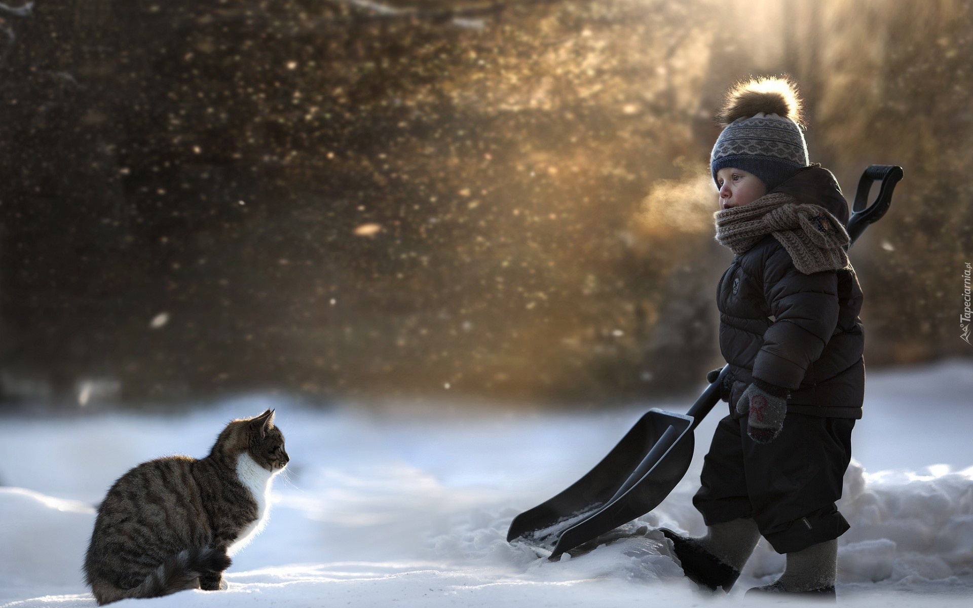 Edytor tapety: Chłopiec, Kot, Park, Zima