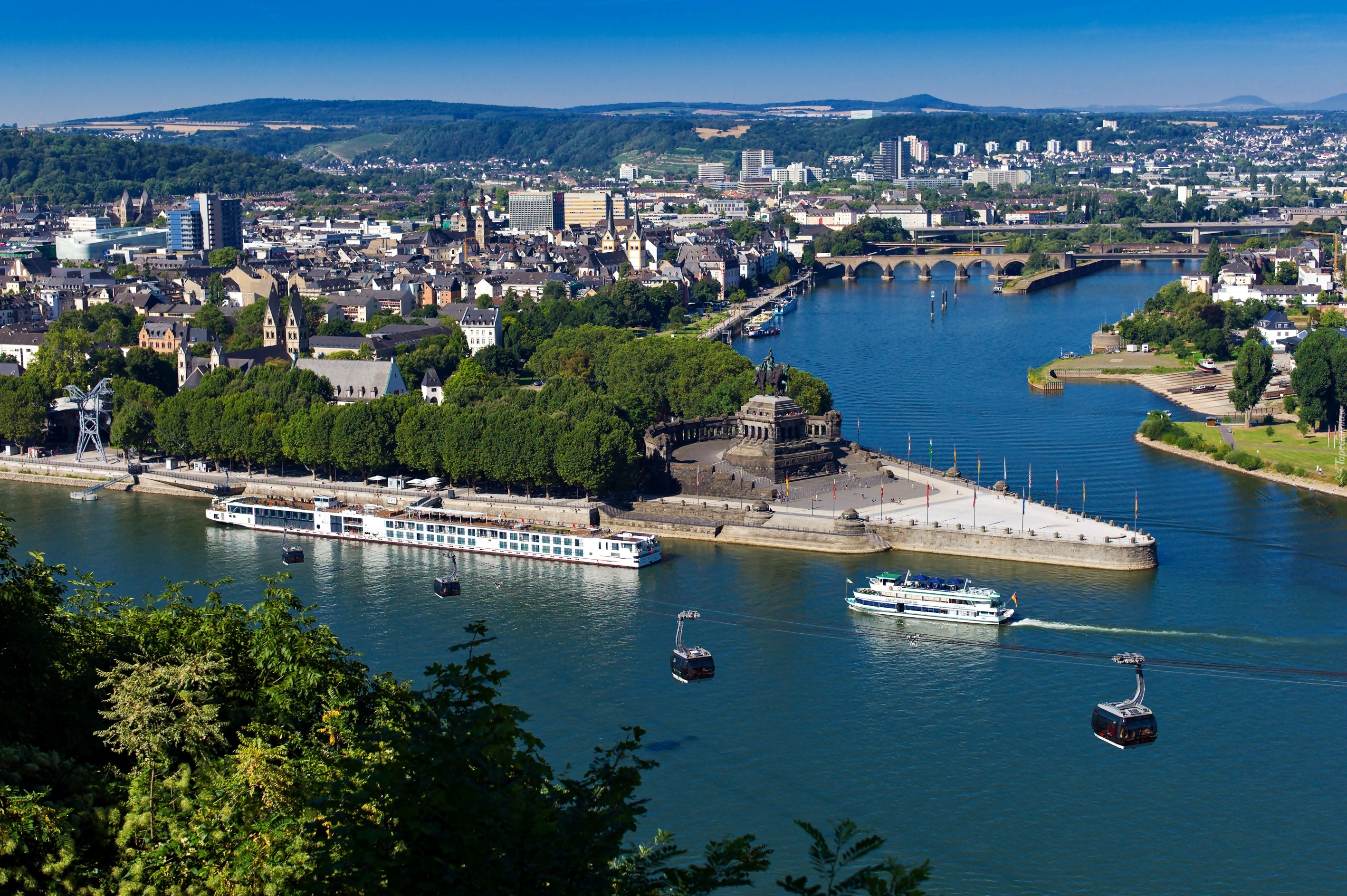 Edytor tapety: Panorama, Koblencji, Rzeka, Mosty, Statek