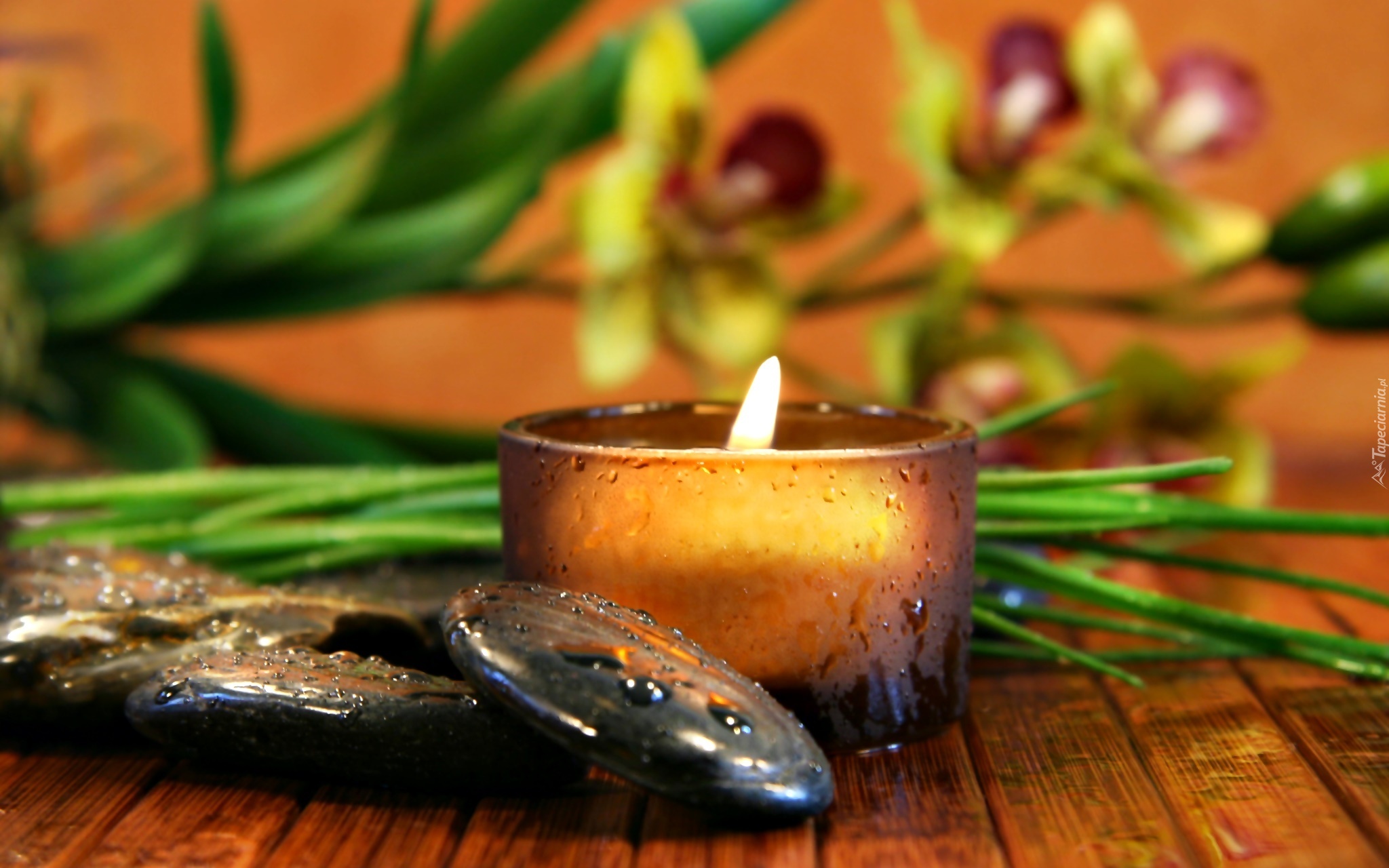 Edytor tapety: Kamienie, Świeca, Bambus, SPA
