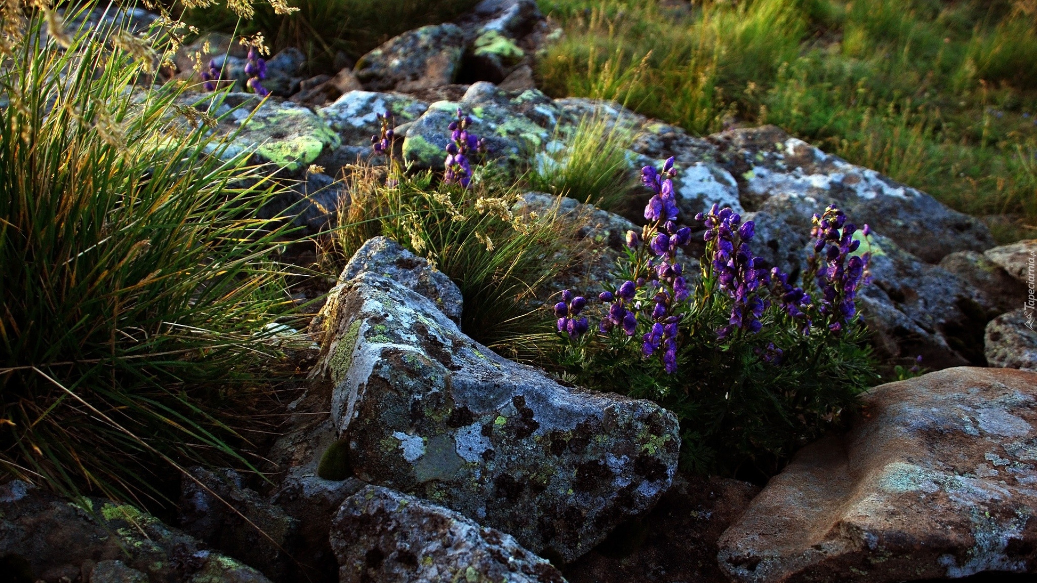 Edytor tapety: Kamienie, Trawa, Fioletowe, Kwiaty