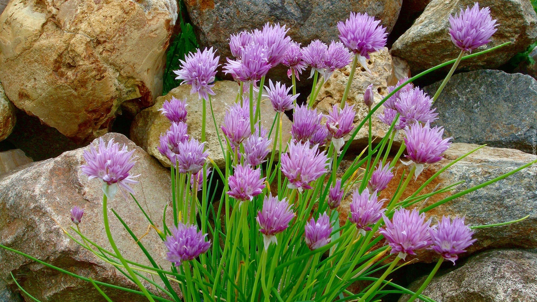 Edytor tapety: Kamienie, Fioletowe, Kwiaty, Szczypiorek