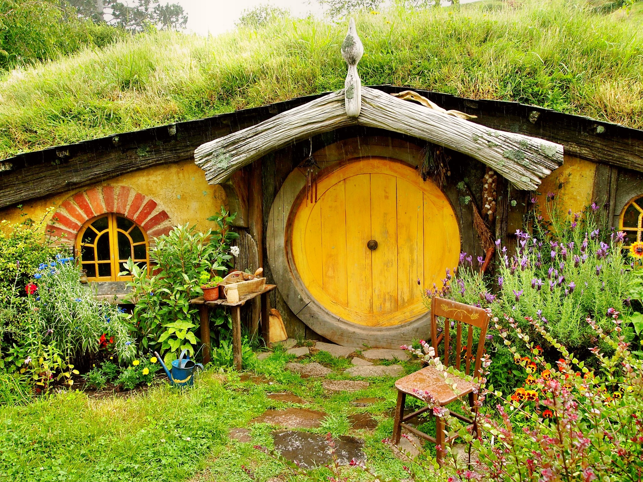 Edytor tapety: Domek Hobbit, Ogródek, Nowa Zelandia