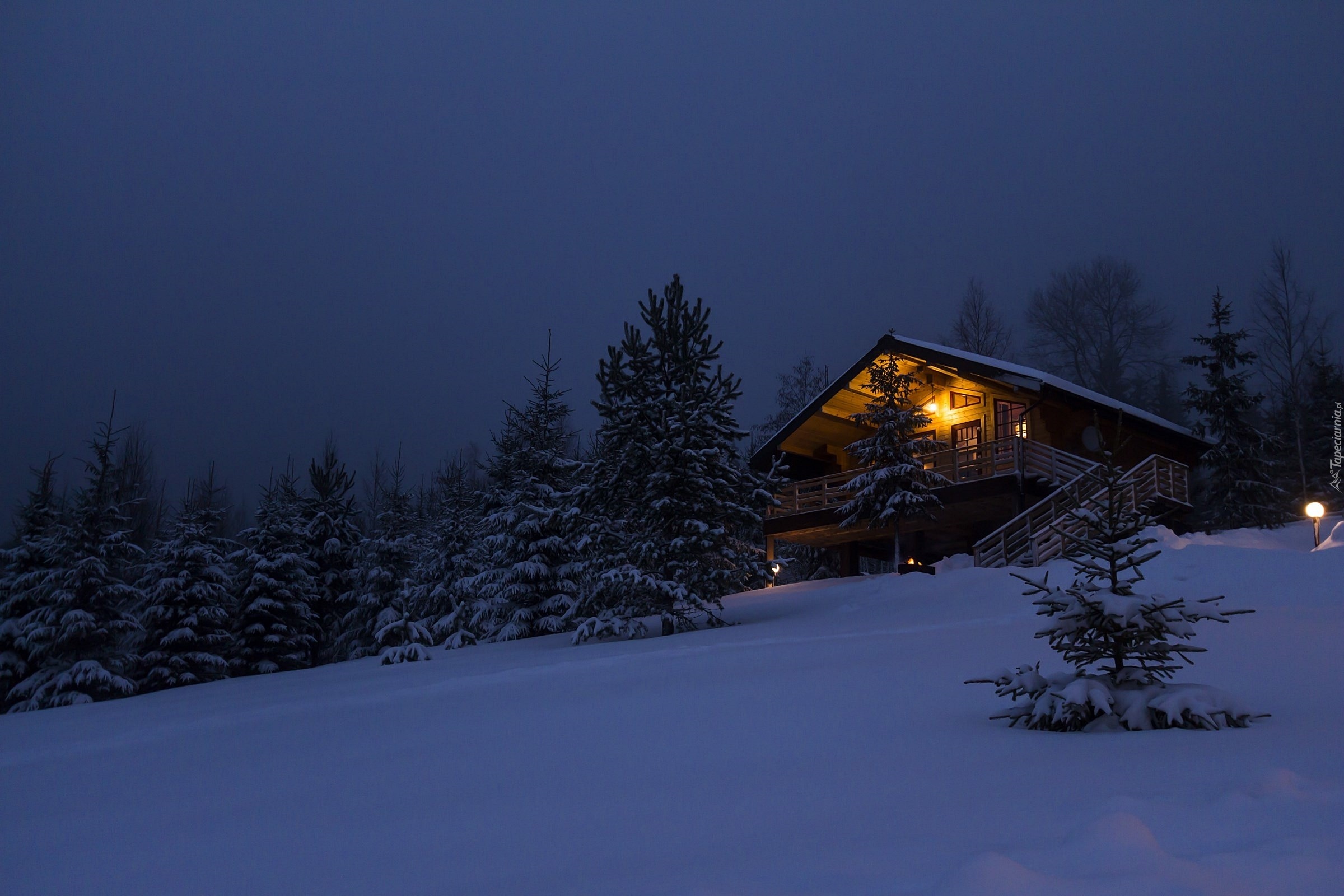 Edytor tapety: Zima, Oświetlony, Dom, Noc