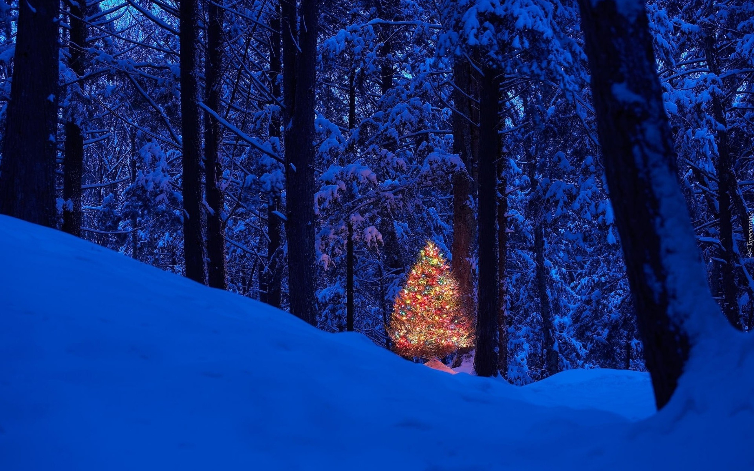 Edytor tapety: Zima, Las, Oświetlona, Choinka