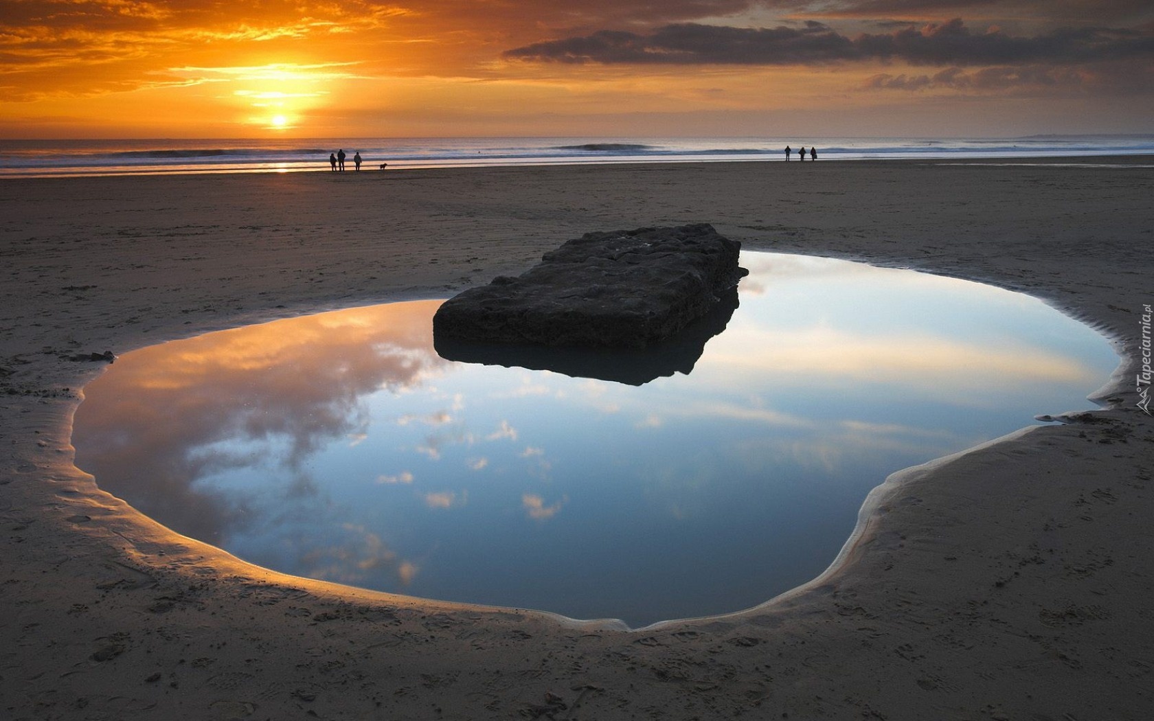 Edytor tapety: Zachód, Słońca, Morze, Plaża, Kamień