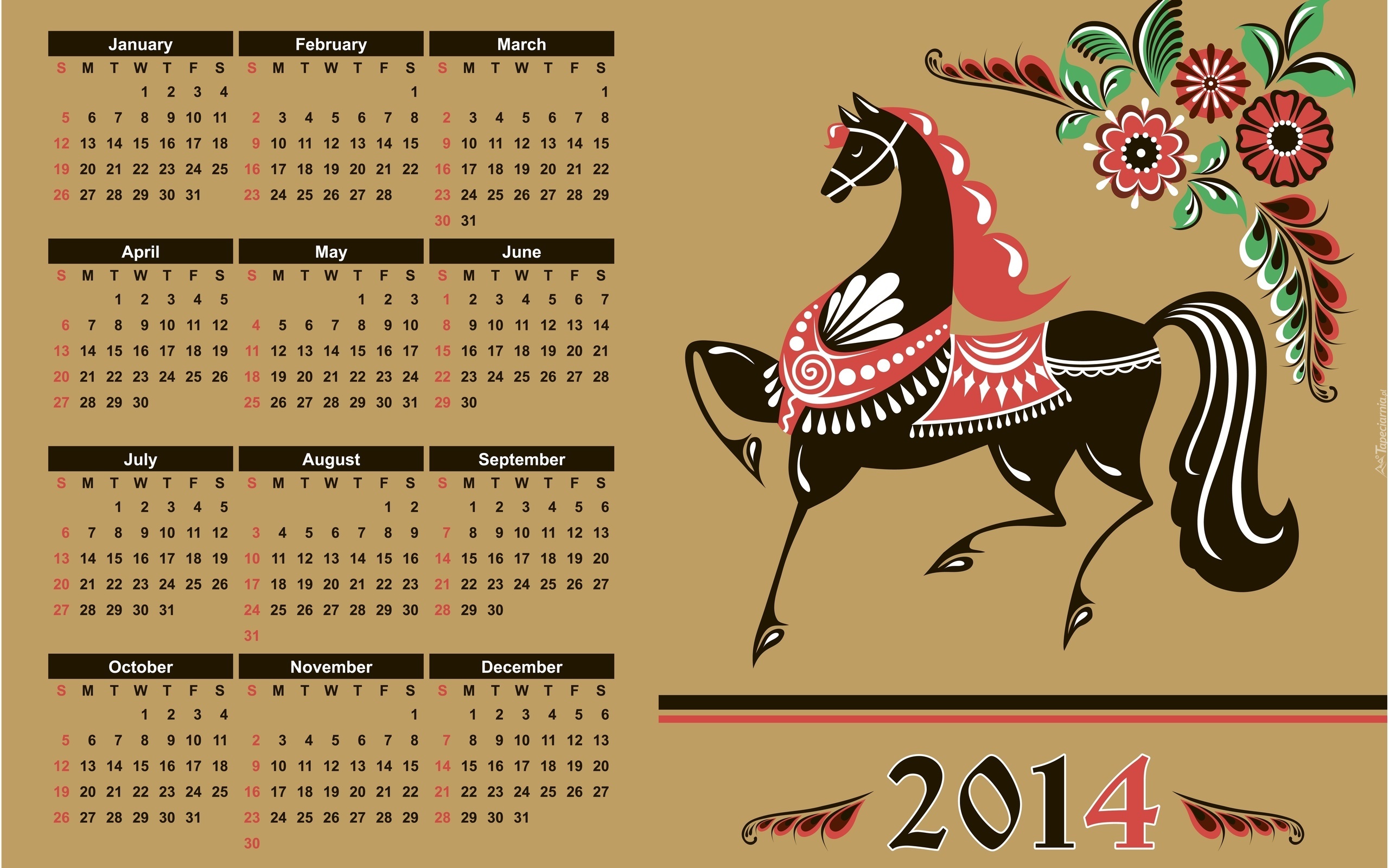 Edytor tapety: Kalendarz, 2014 Rok, Koń