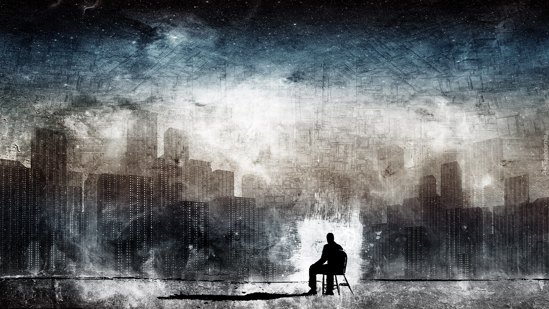 Edytor tapety: Grafika, Mężczyzna, Domy, Miasto