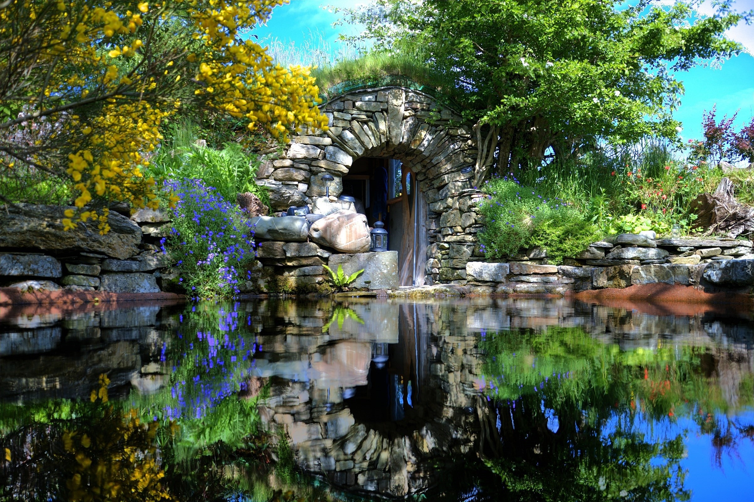Edytor tapety: Domek Hobbit, Staw, Nowa Zelandia