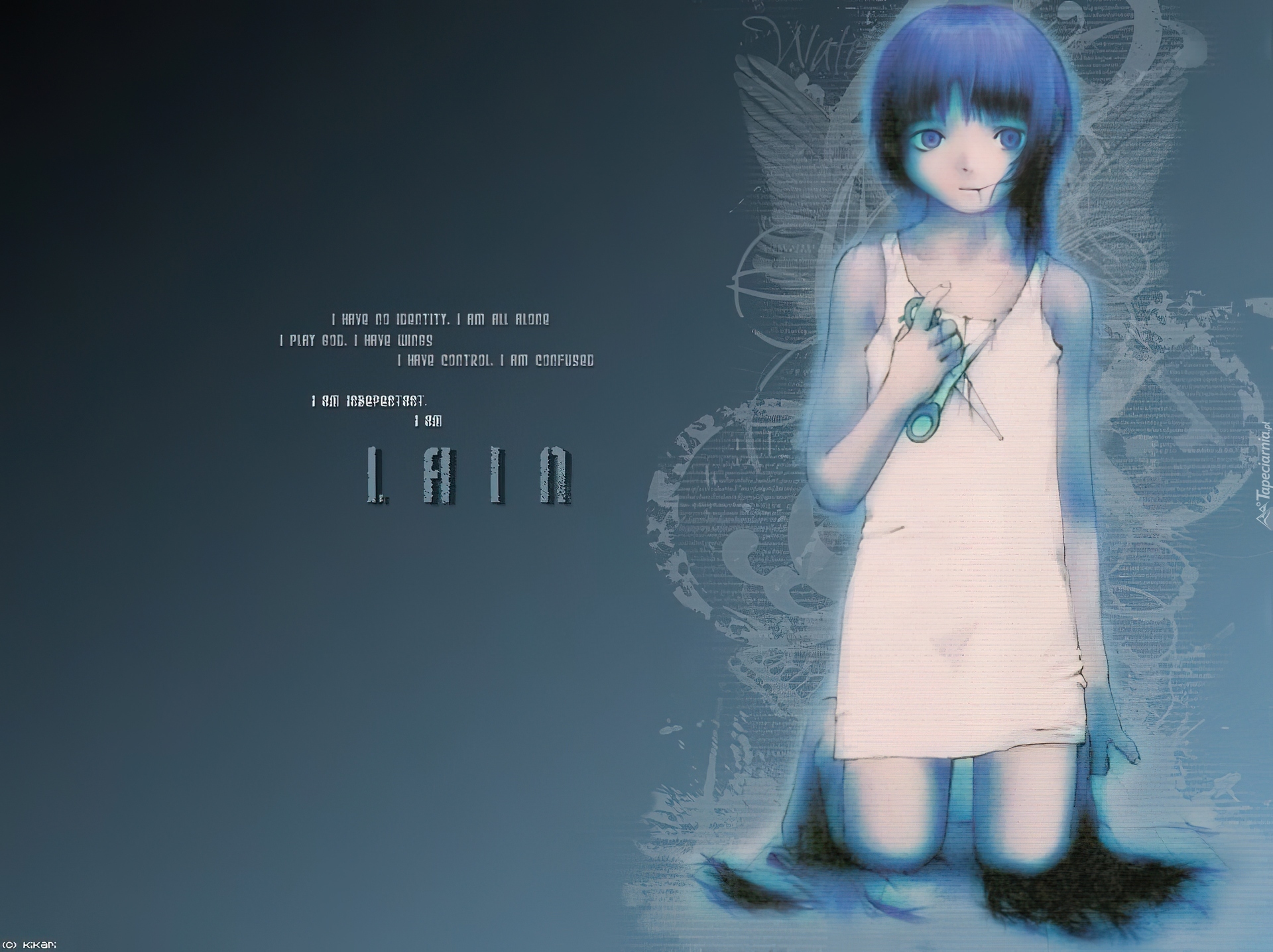 Edytor tapety: Serial Experiments Lain, biała sukienka, nożyczki
