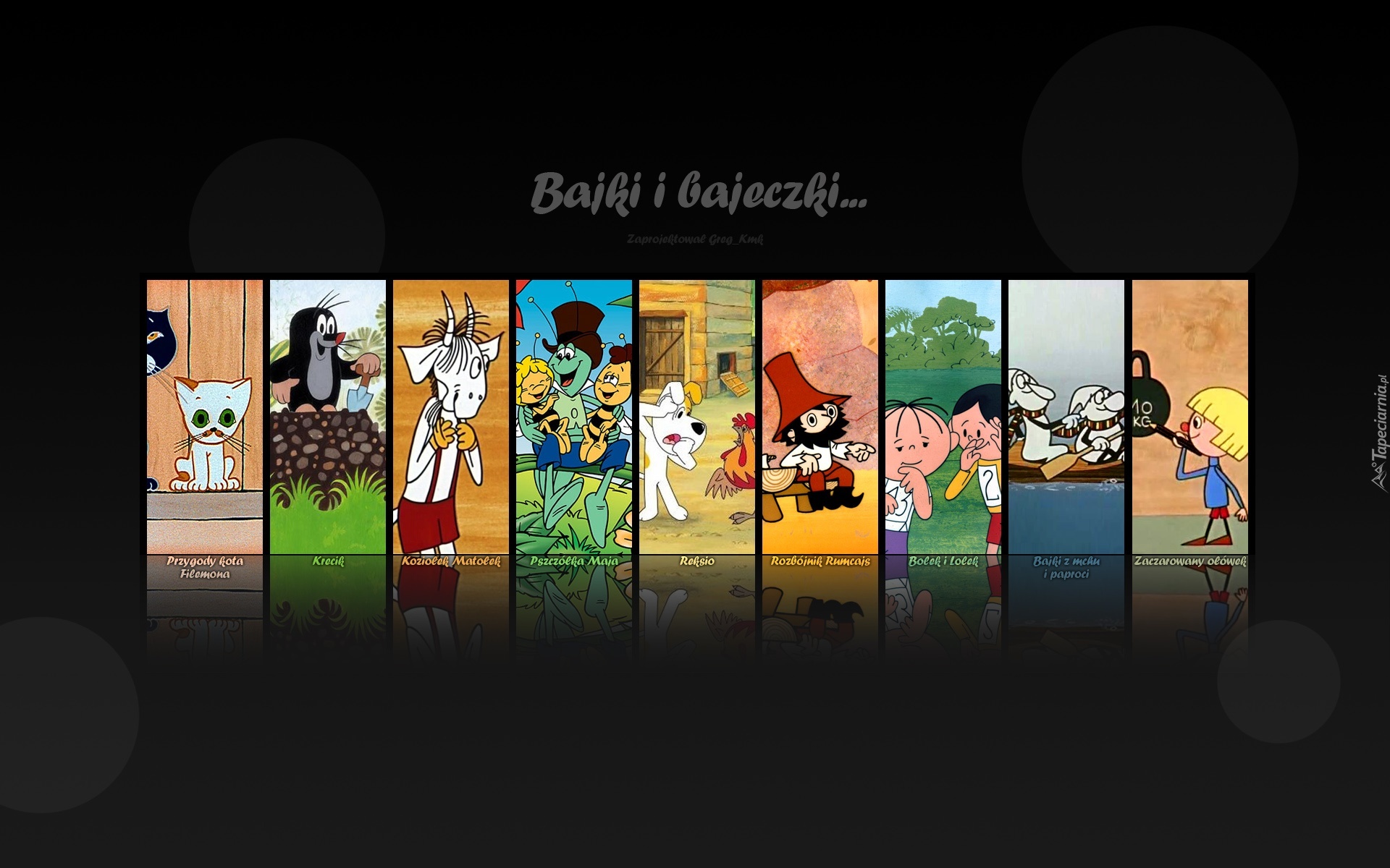Edytor tapety: Bajki, Przygody kota Filemona, Krecik, Koziołek Matołek, Pszczółka Maja, Reksio, Rumcajs, Bolek i Lolek, Bajki z mchu i paproci, Zaczarowany ołówek