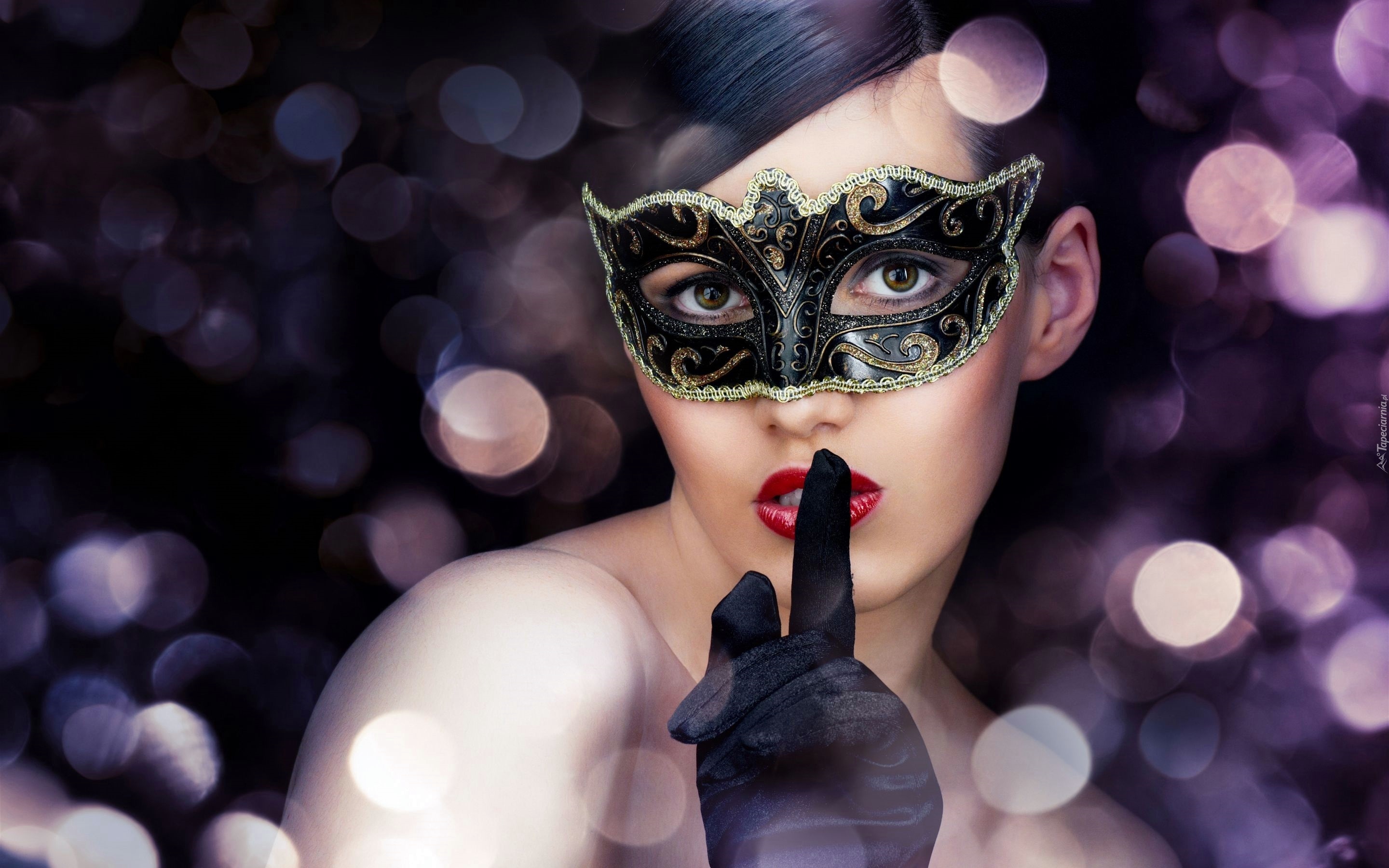 Edytor tapety: Piękna, Kobieta, W Masce, Czarna, Rękawiczka, Światełka