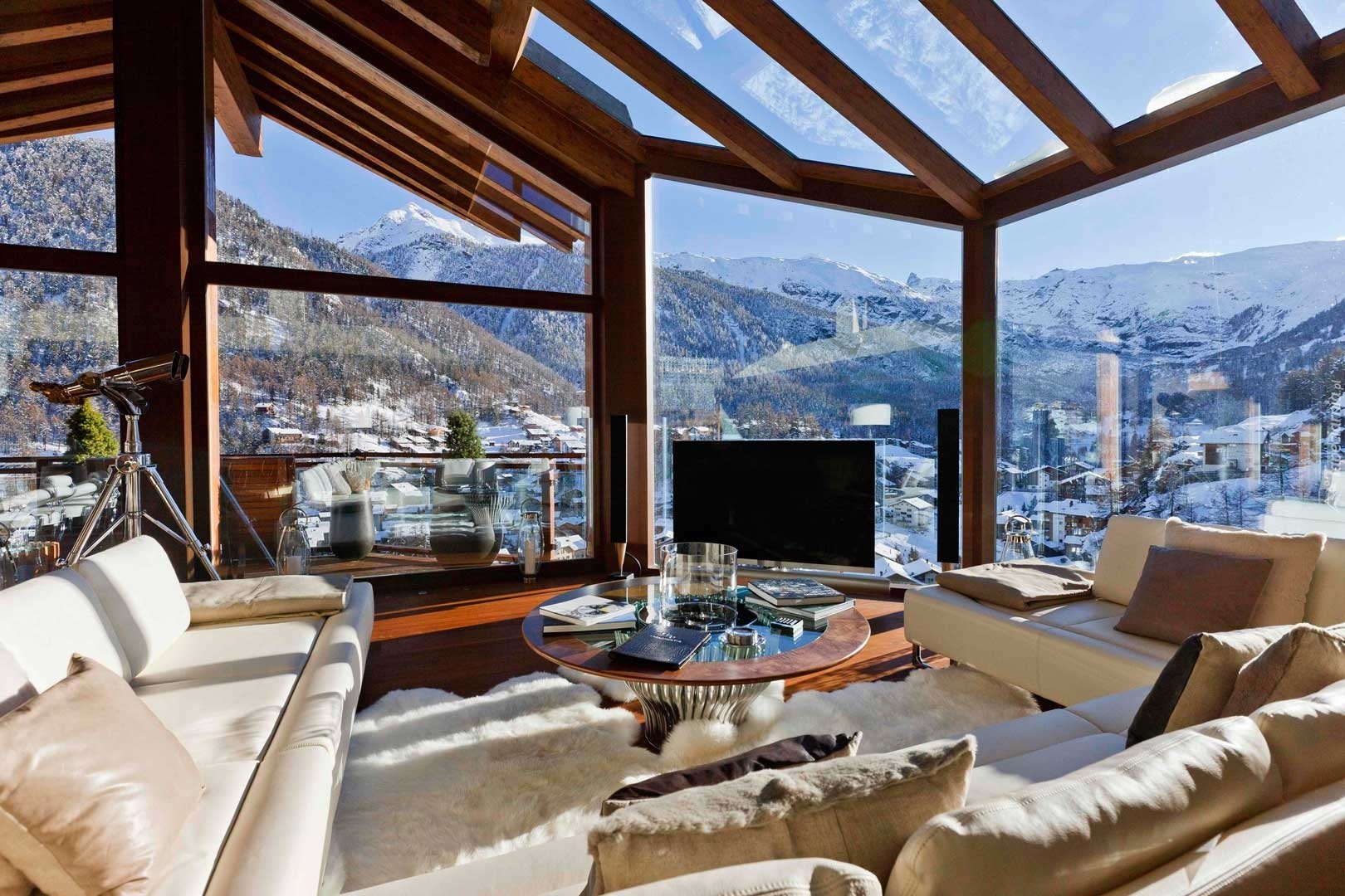Edytor tapety: Dom, Wnętrze, Okna, Widok, Góry
