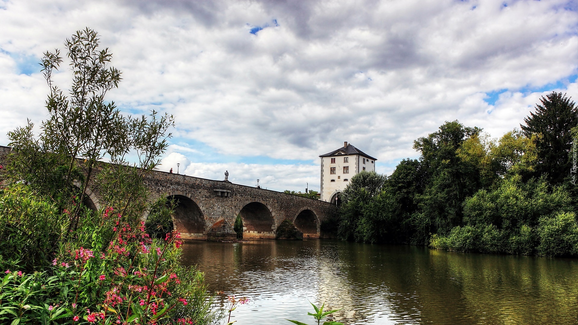 Edytor tapety: Limburg, Rzeka, Kamienny, Most, Budynek, Roślinność