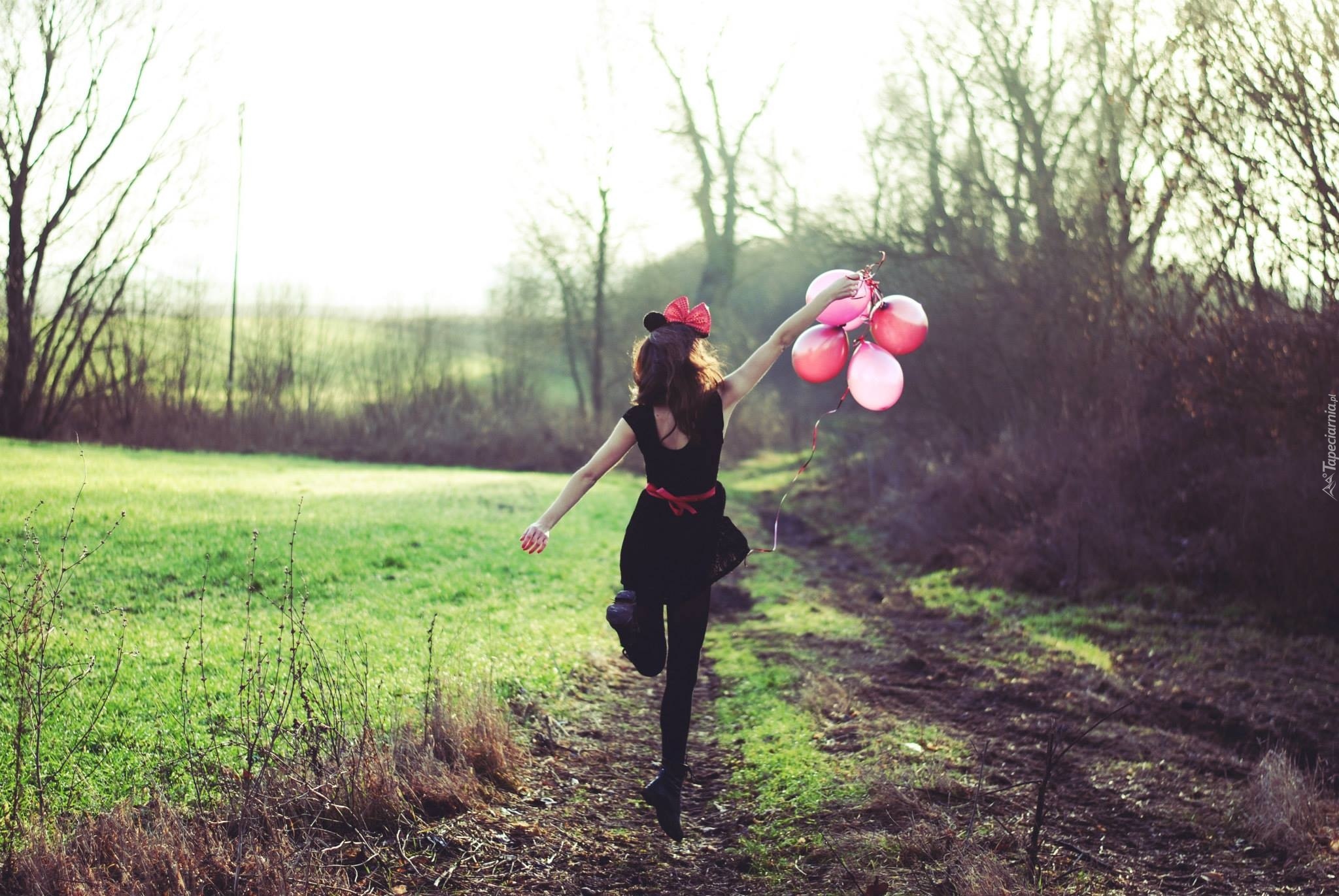 Edytor tapety: Kobieta, Brunetka, Droga, Balony