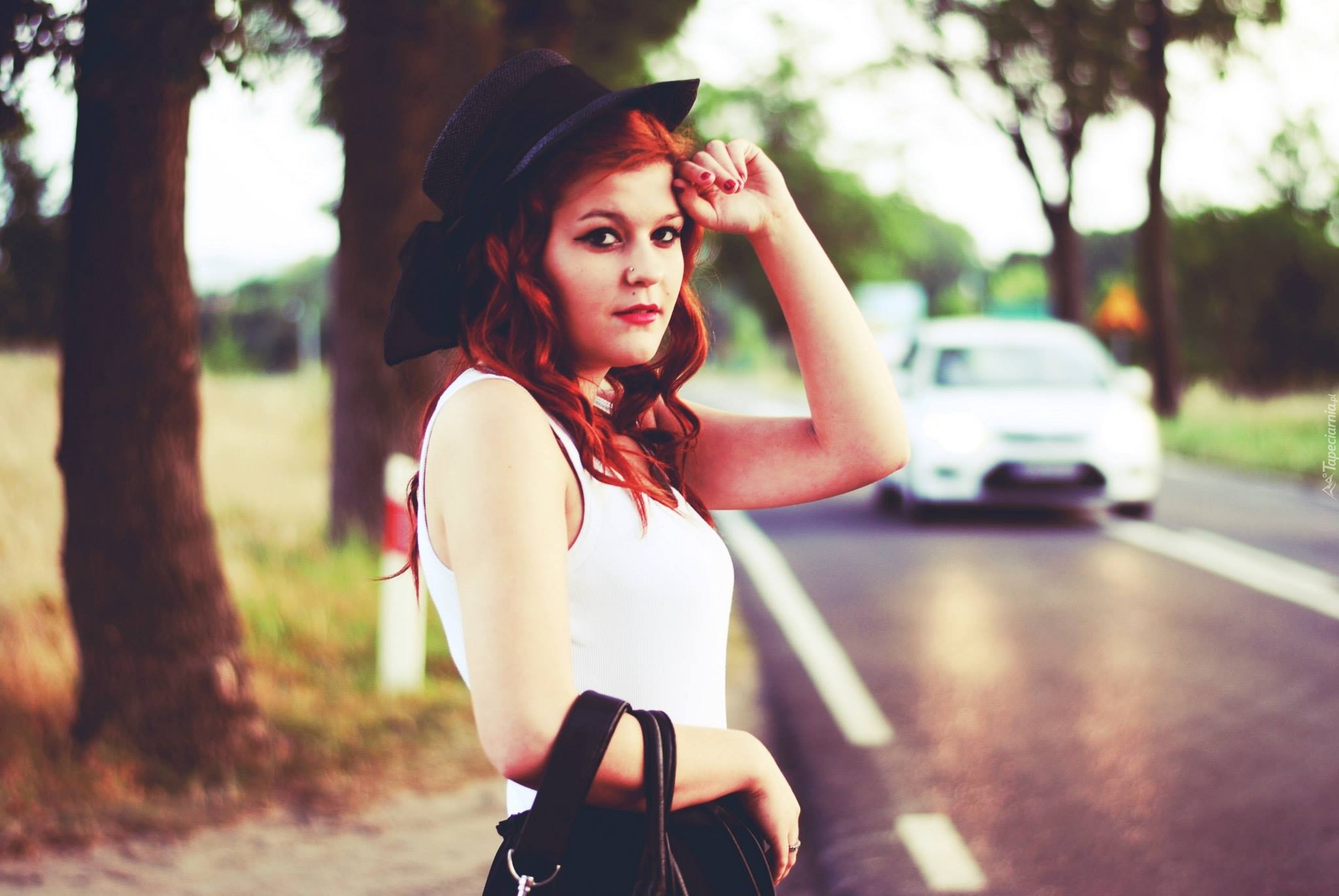 Edytor tapety: Kobieta, Ruda, Droga