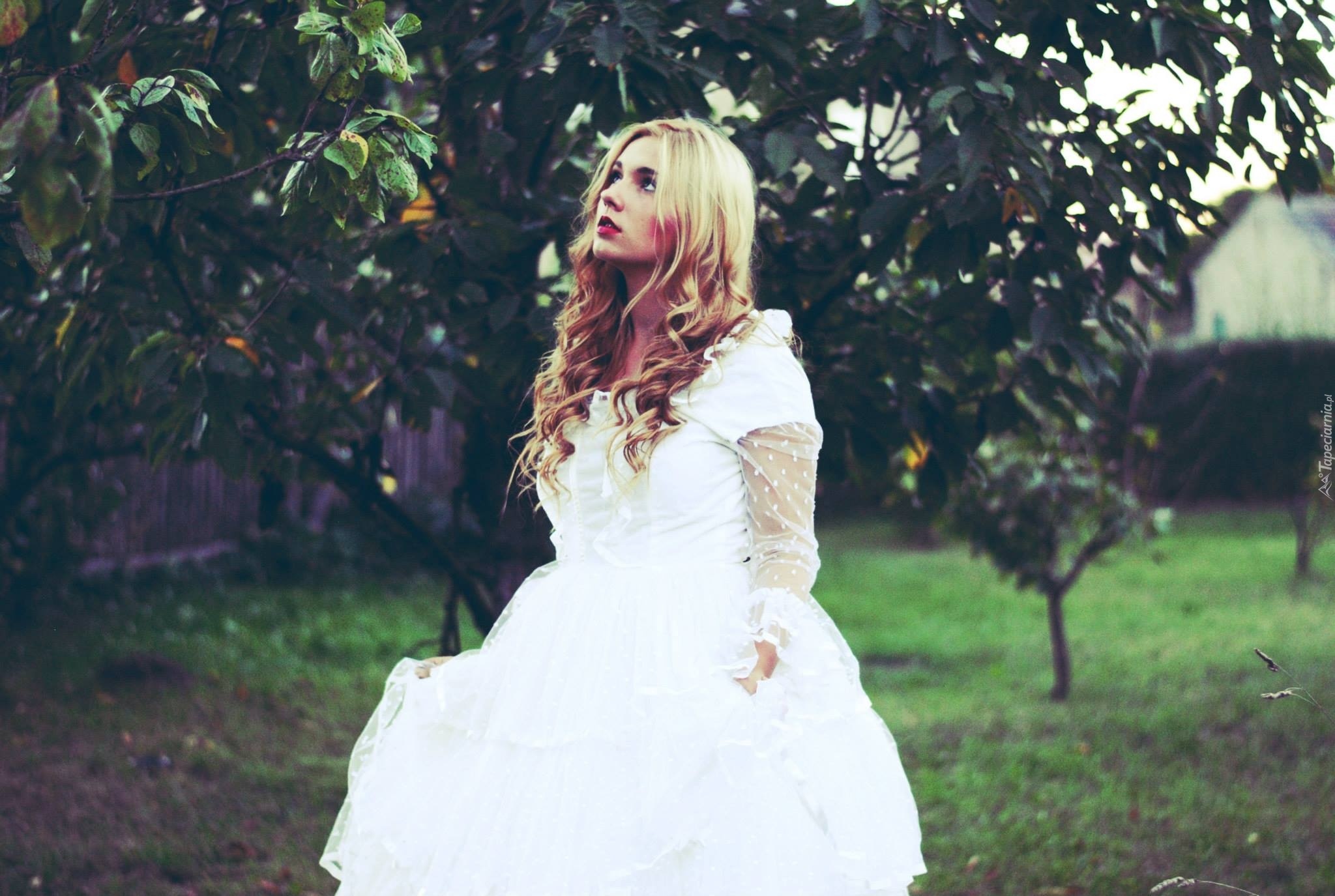 Edytor tapety: Kobieta, Blondynka, Biała, Sukienka