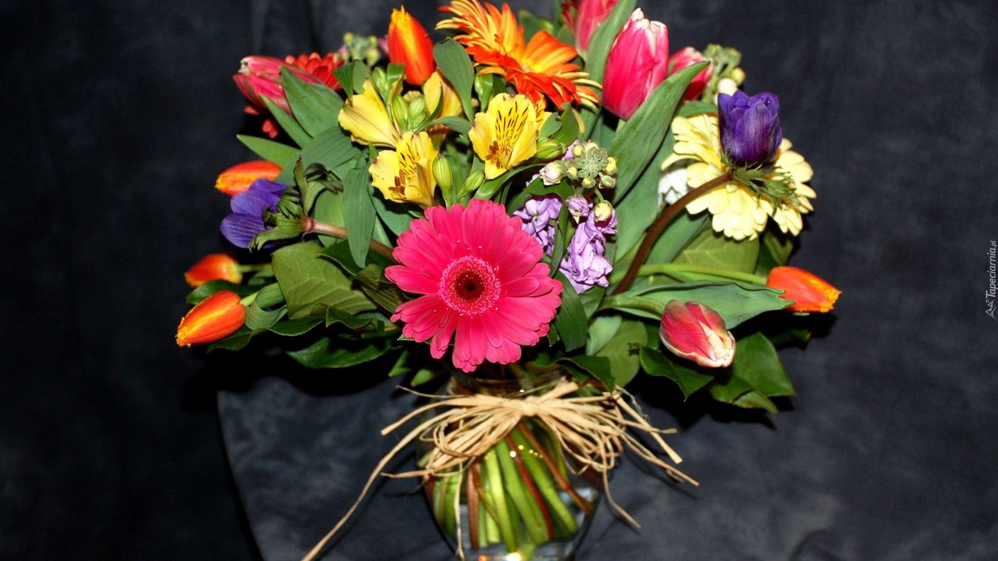 Edytor tapety: Kompozycja, Bukiet, Kwiaty, Alstremeria, Gerbery, Tulipany