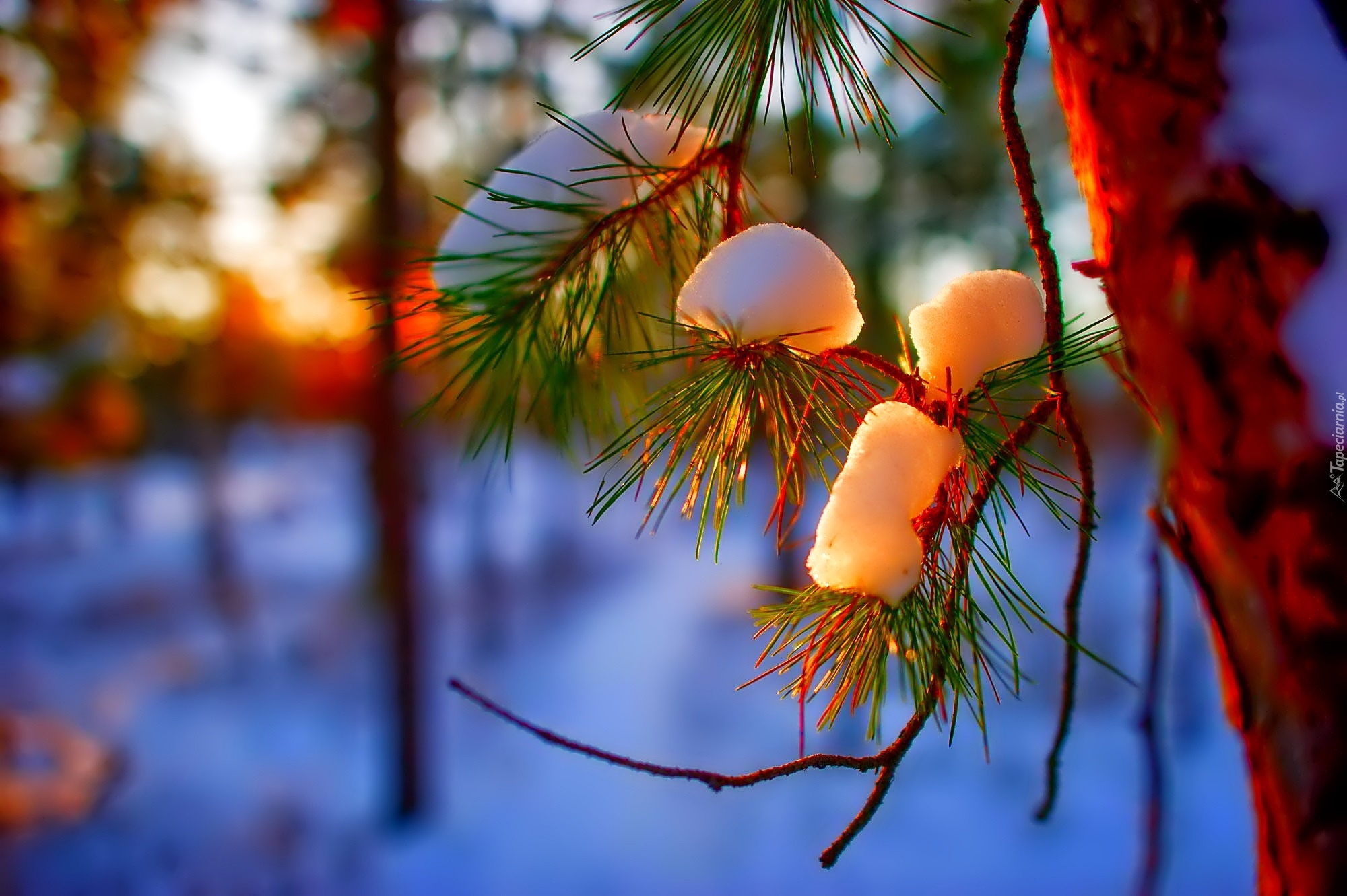 Edytor tapety: Ośnieżona, Gałązka, Zachód Słońca, Zima