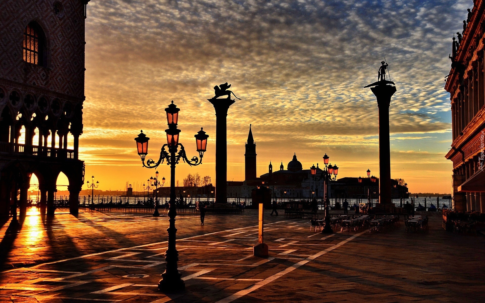 Edytor tapety: Wenecja, Włochy, Promenada, Zachód Słońca