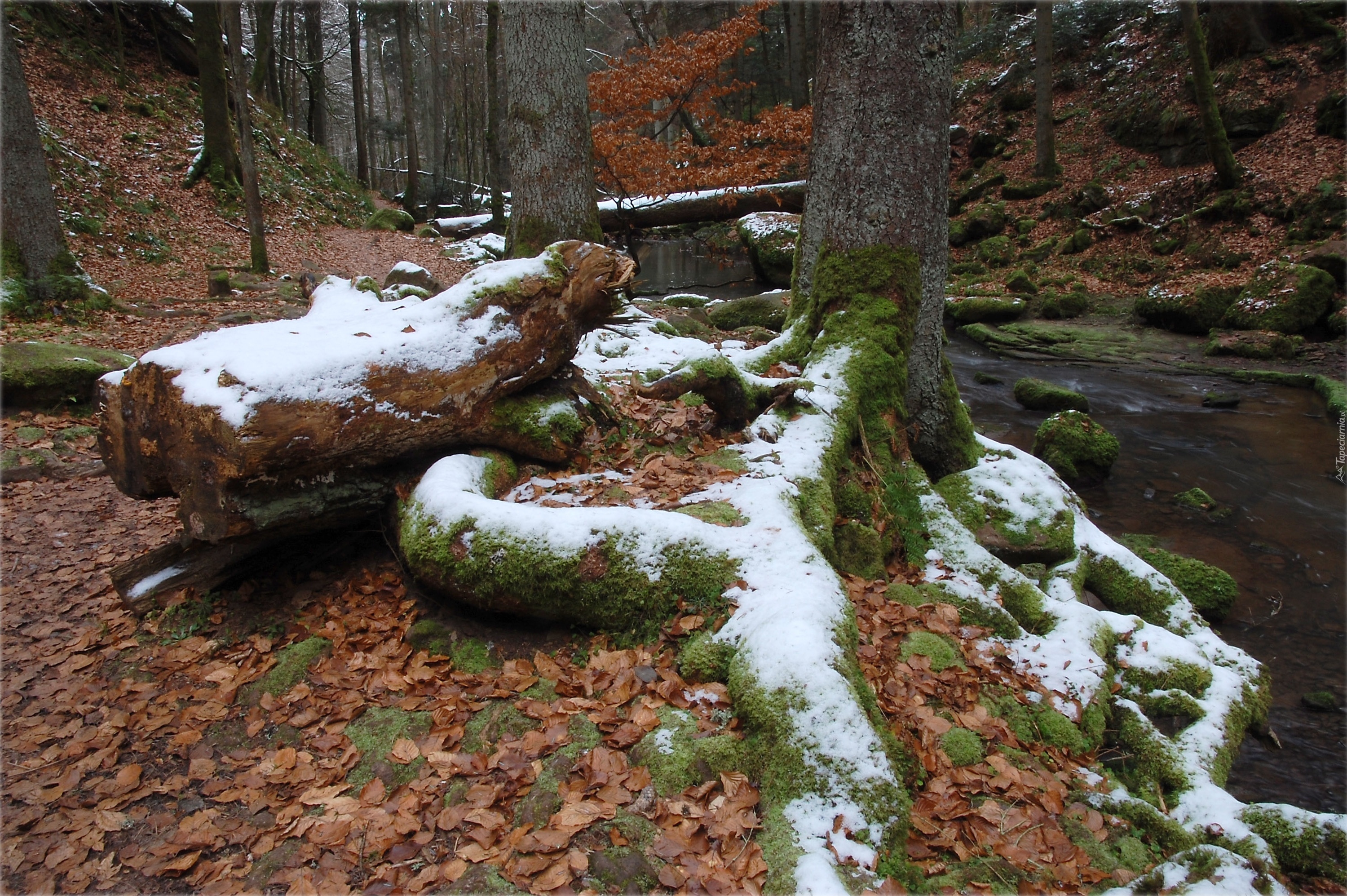 Edytor tapety: Las, Liście, Rzeczka, Śnieg