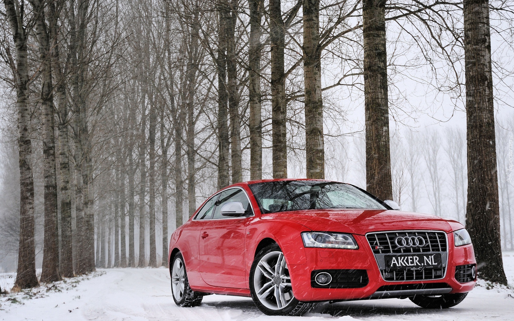 Edytor tapety: Czerwone, Audi S5, Las, Droga, Śnieg