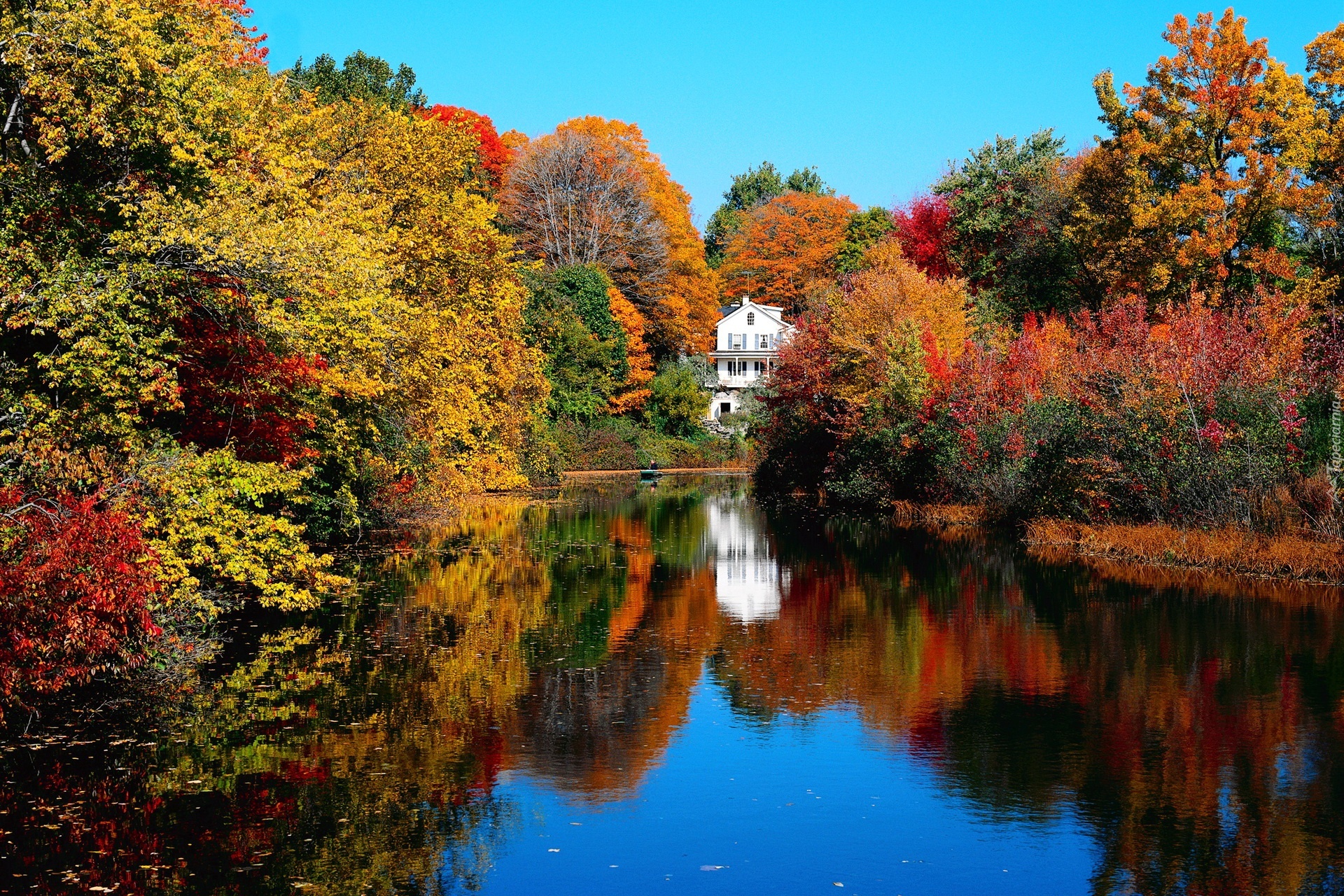 Edytor tapety: Domek, Jesień, Las, Jezioro