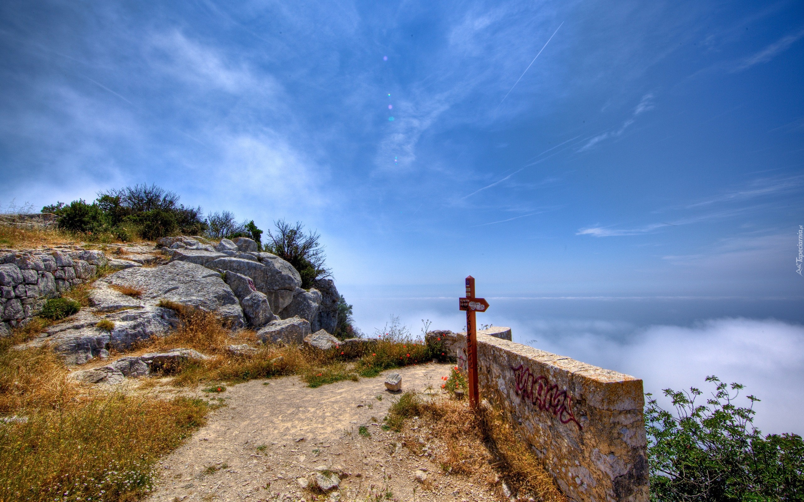 Edytor tapety: Droga, Znak, Skały, Chmury