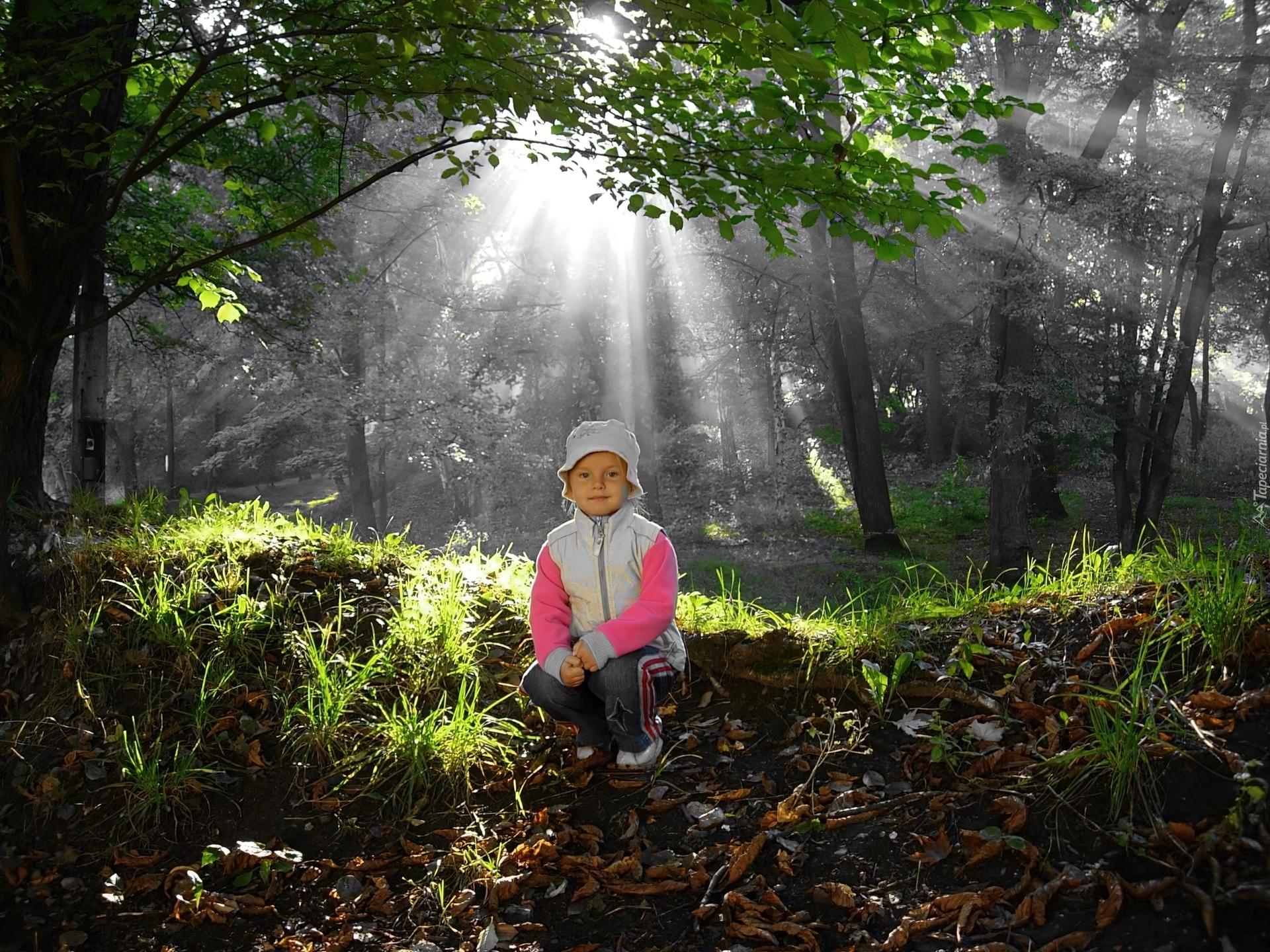 Edytor tapety: Dziewczynka, Promienie, Światła