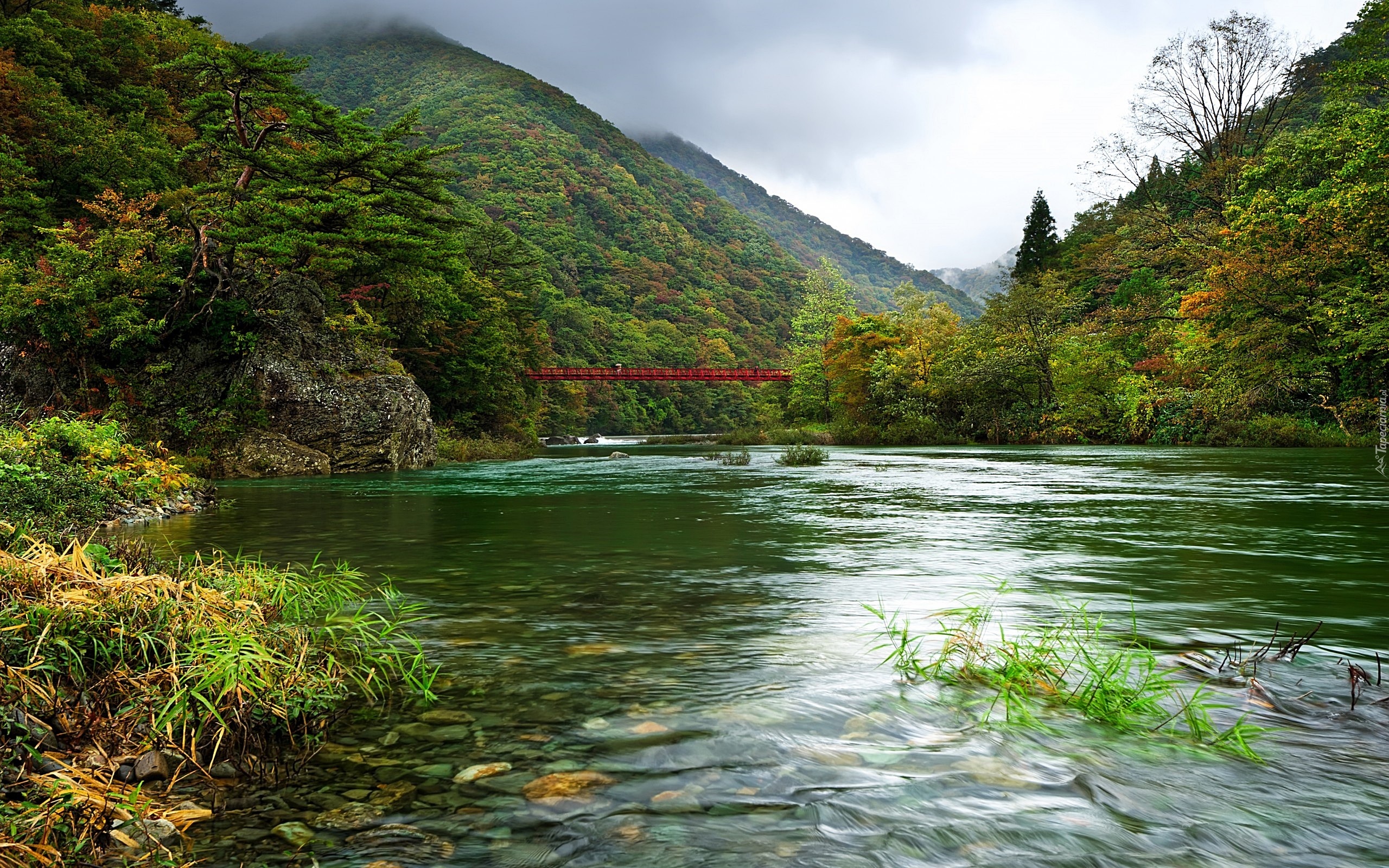 Edytor tapety: Góry, Lasy, Rzeka, Most