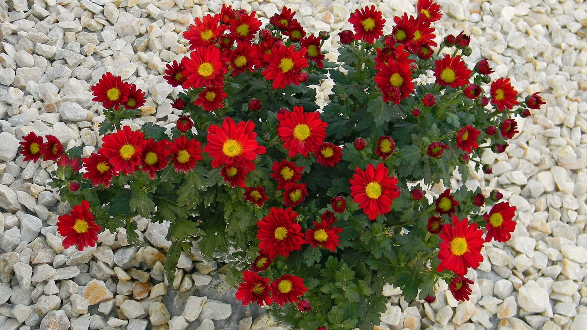 Edytor tapety: Kwiaty, Czerwone, Chryzantemy, Kamyki