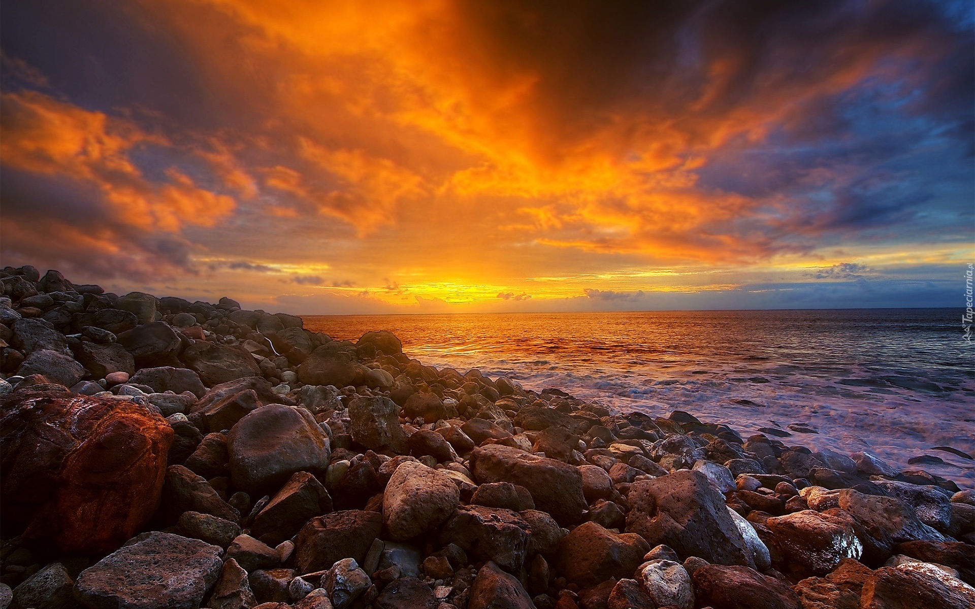Edytor tapety: Morze, Kamienie, Zachód Słońca