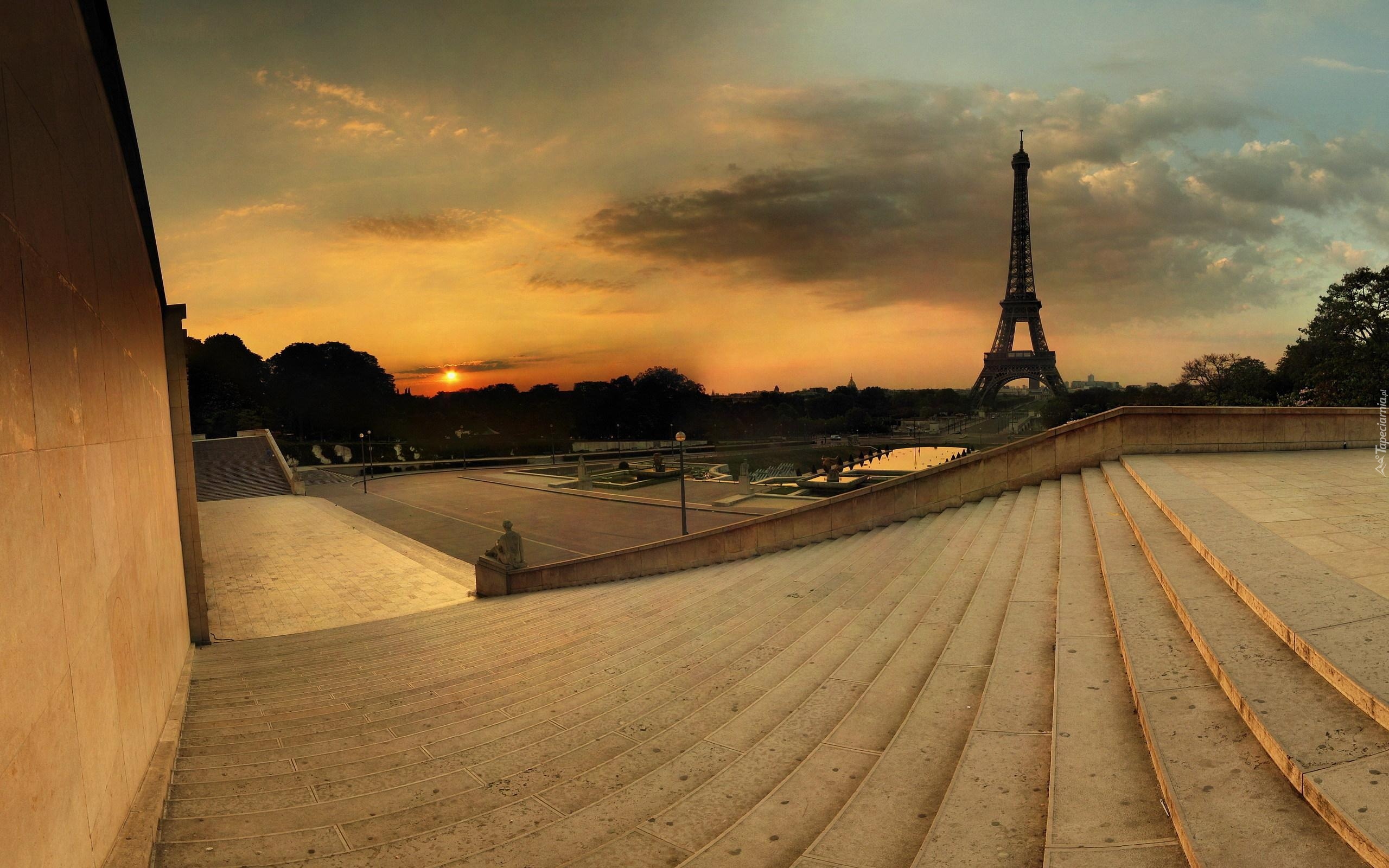 Edytor tapety: Francja, wieża, Eiffla, Schody, Zachód, Słońca