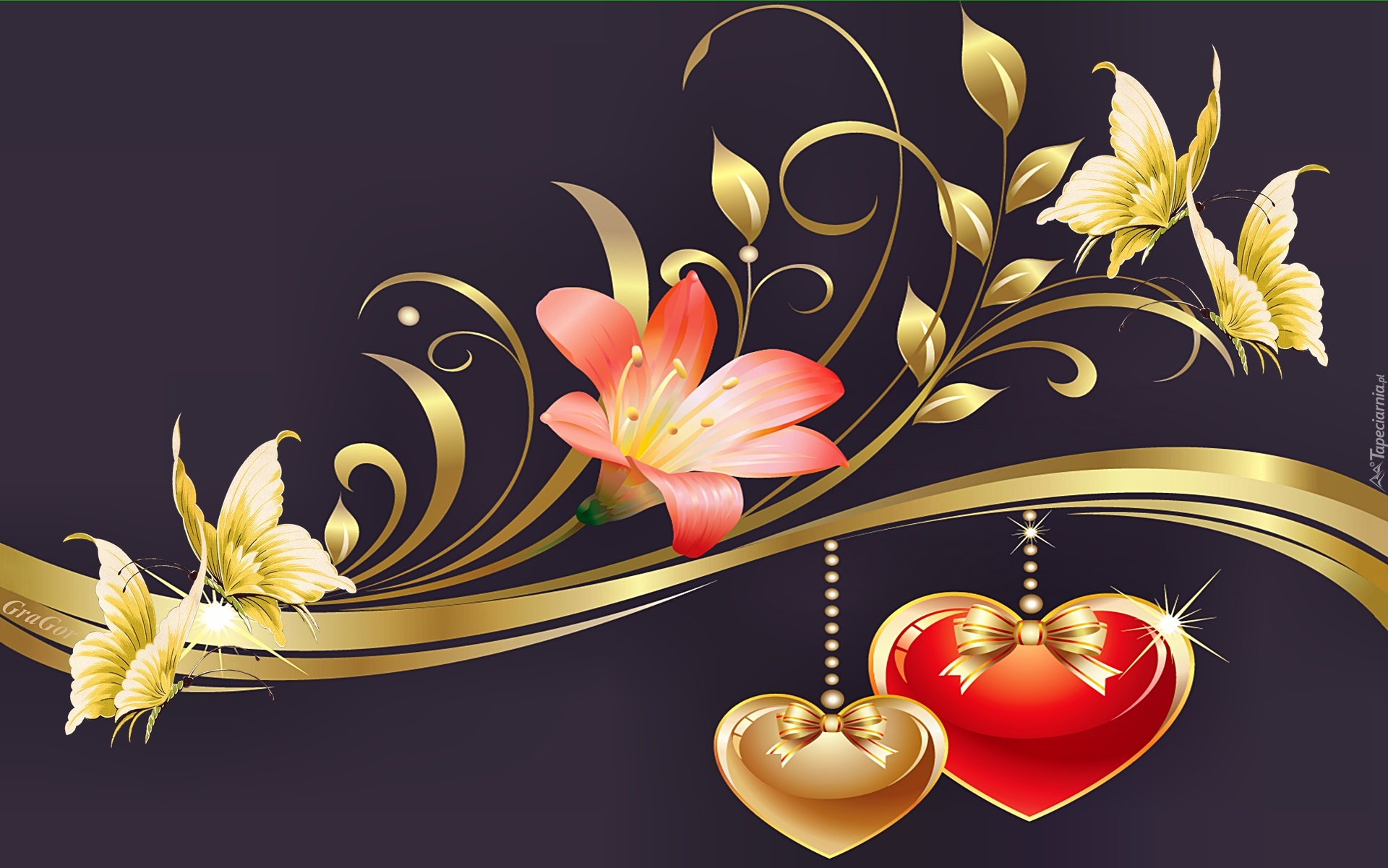 Edytor tapety: Serca, Kwiatek, Motyle, Walentynki