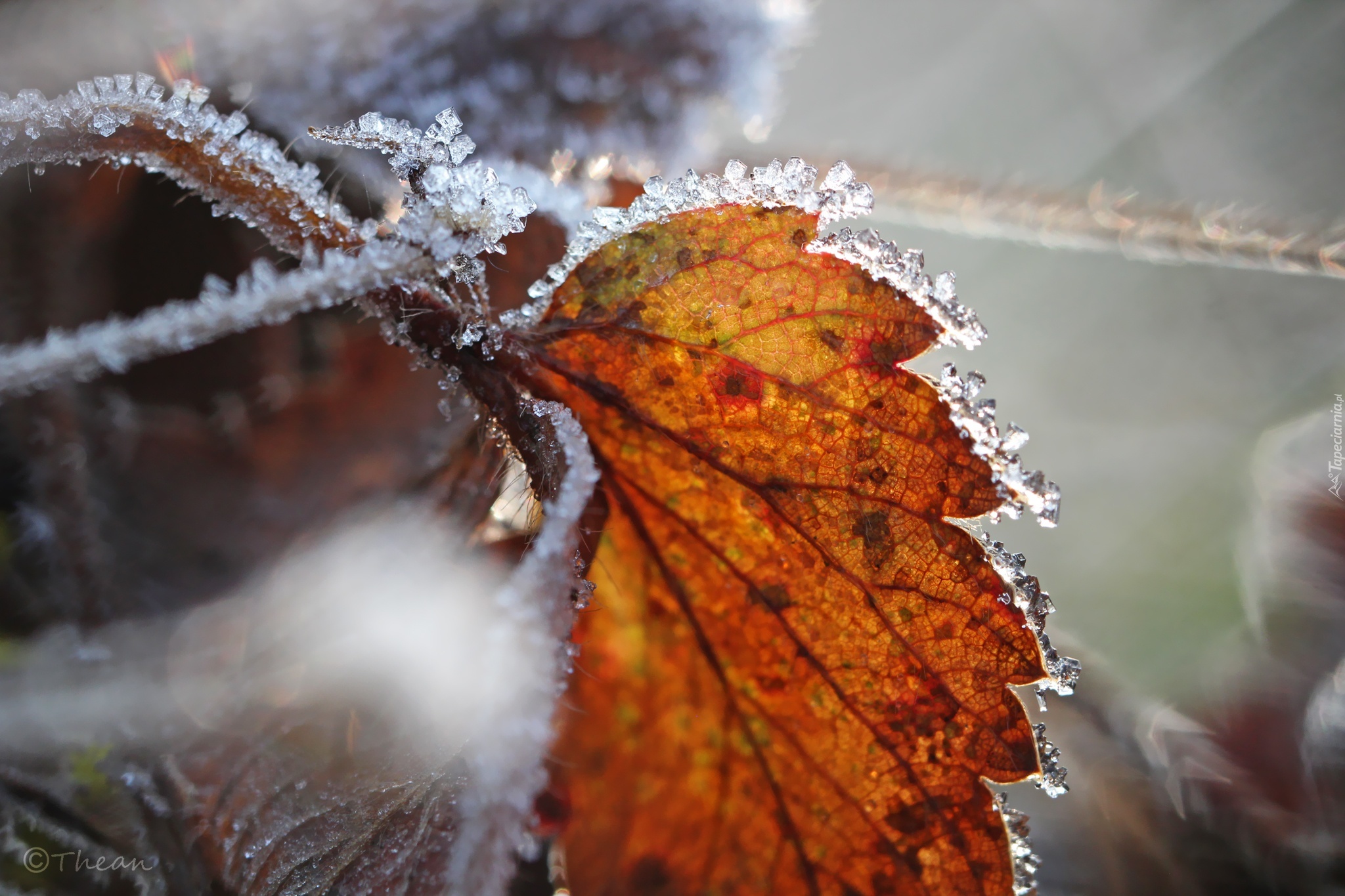 Edytor tapety: Liść, Przymrozek, Kryształki, Lodu