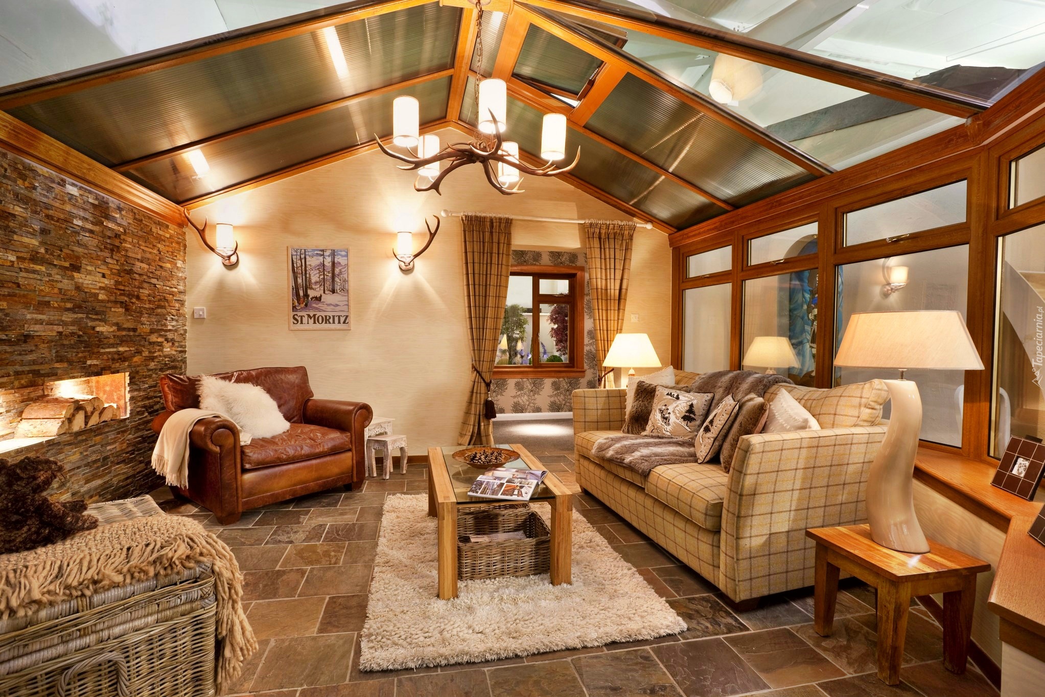 Edytor tapety: Pokój, Kominek, Lampy