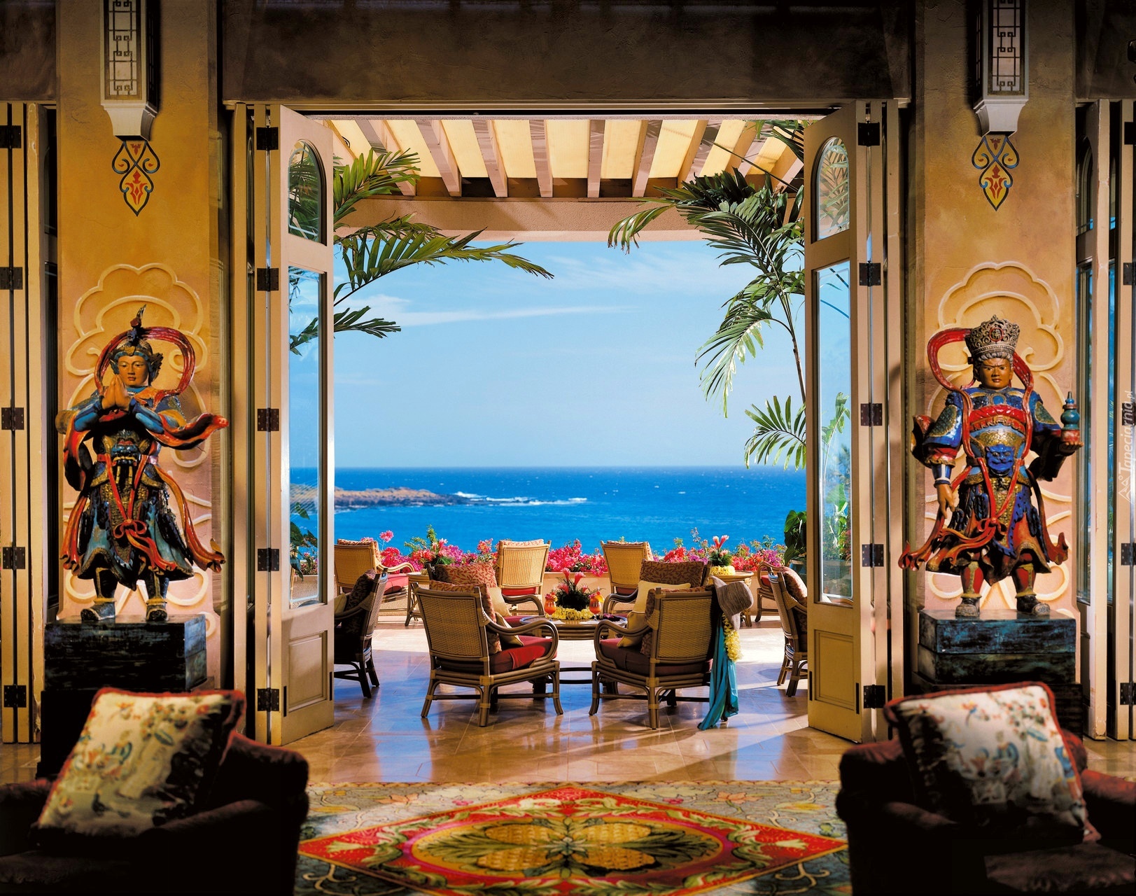 Edytor tapety: Hotelowy, Salon, Taras, Widok, Morze