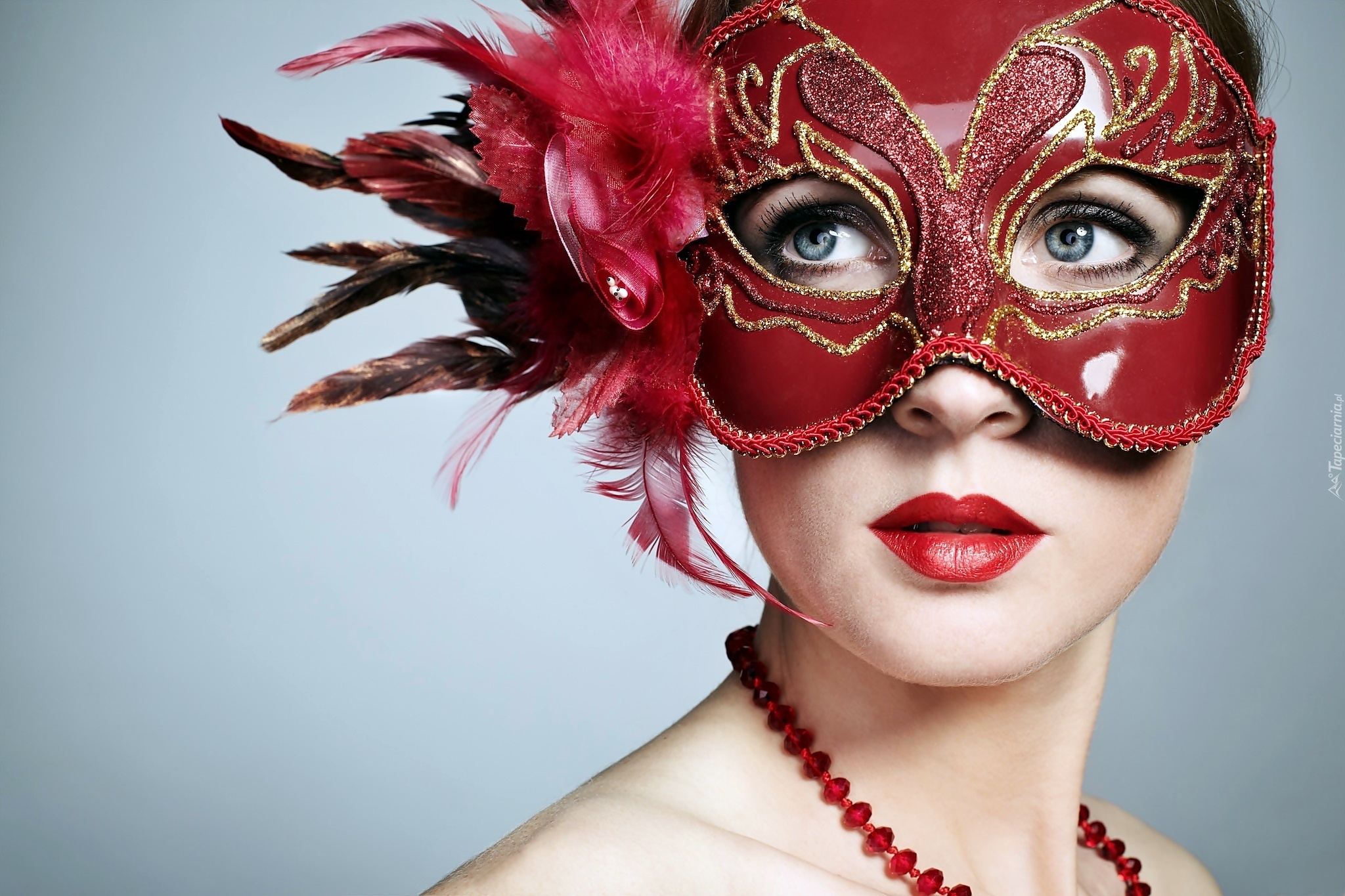 Edytor tapety: Piękna, Kobieta, Twarz, Maska, Korale, Zbliżenie