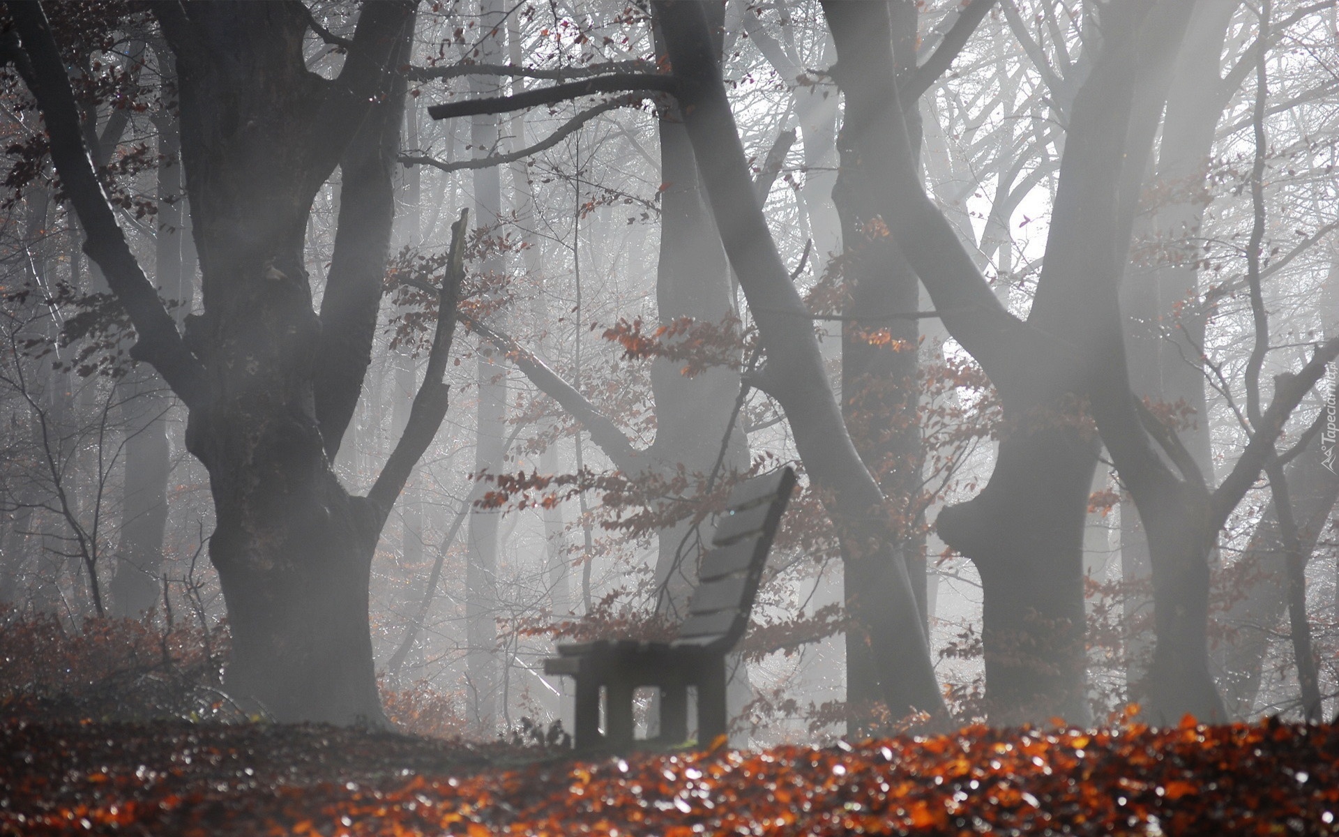 Edytor tapety: Park, Drzewa, Ławka, Liście