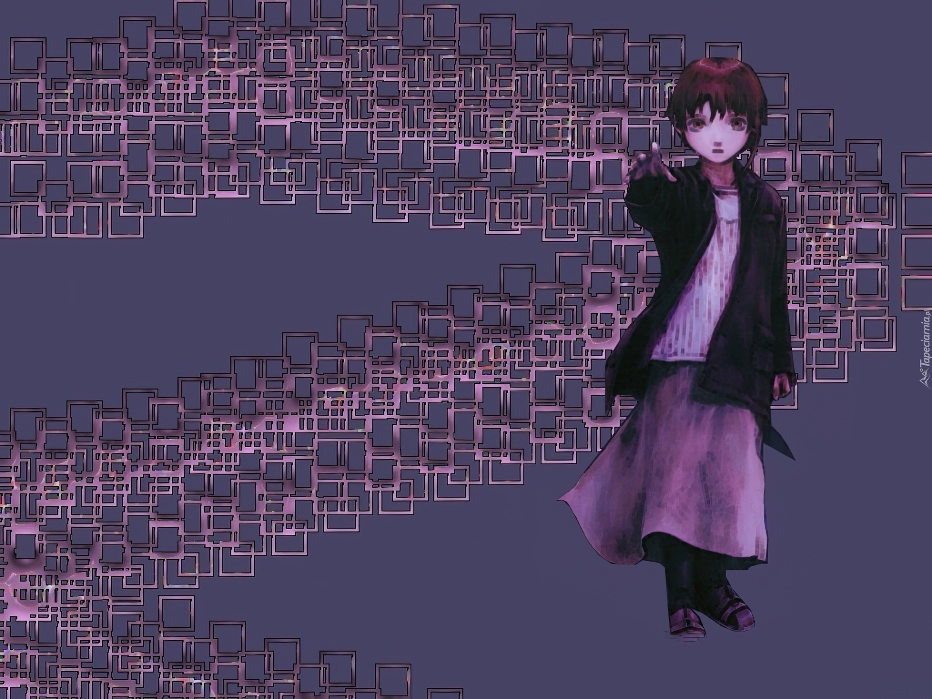 Edytor tapety: Serial Experiments Lain, czarna kurtka, długa spódnica