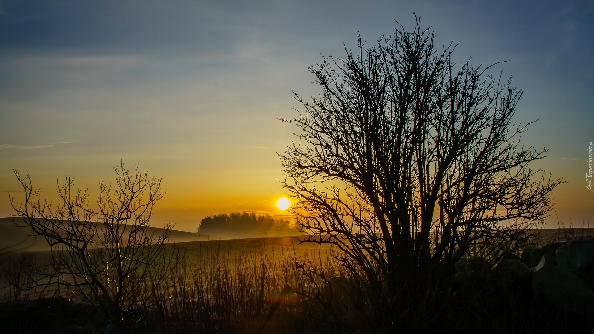 Edytor tapety: Pola, Lasy, Wschód, Słońca