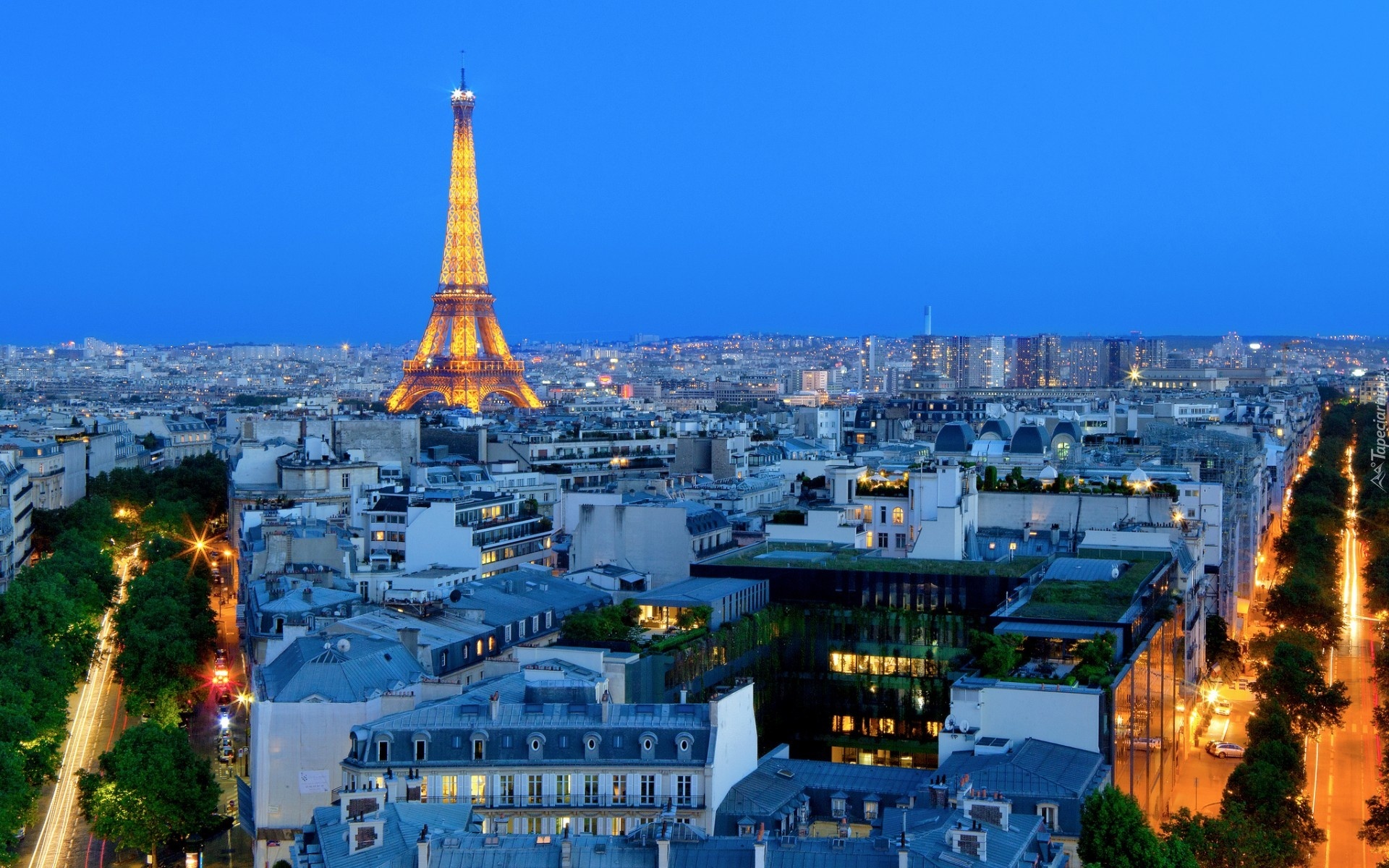 Edytor tapety: Wieża Eiffla, Paryż, Zmrok