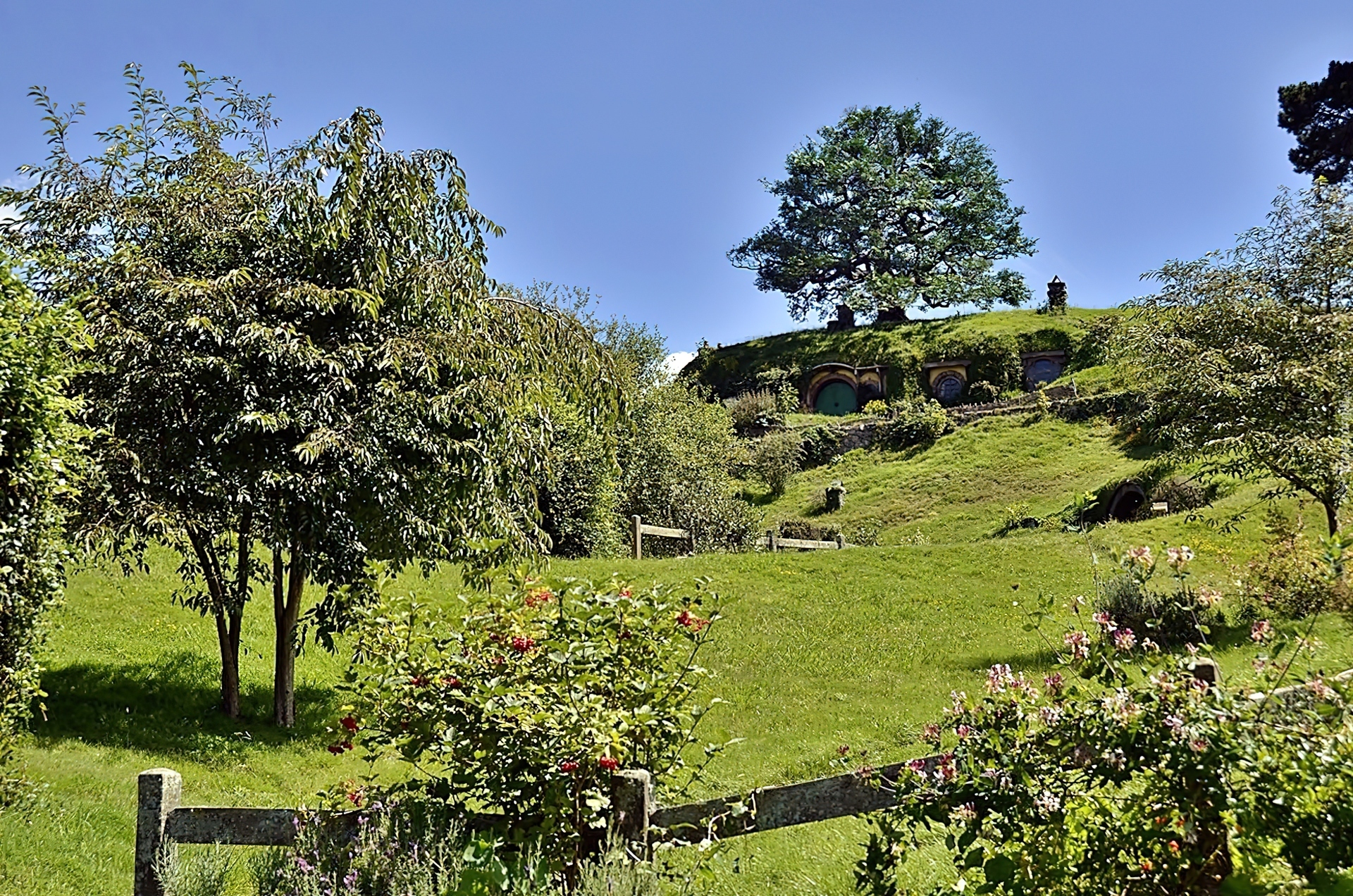 Edytor tapety: Domek, Hobbita, Łąka, Ogródek