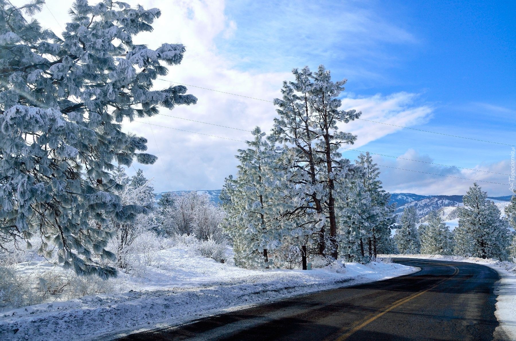 Edytor tapety: Zima, Droga, Zakręt, Drzewa