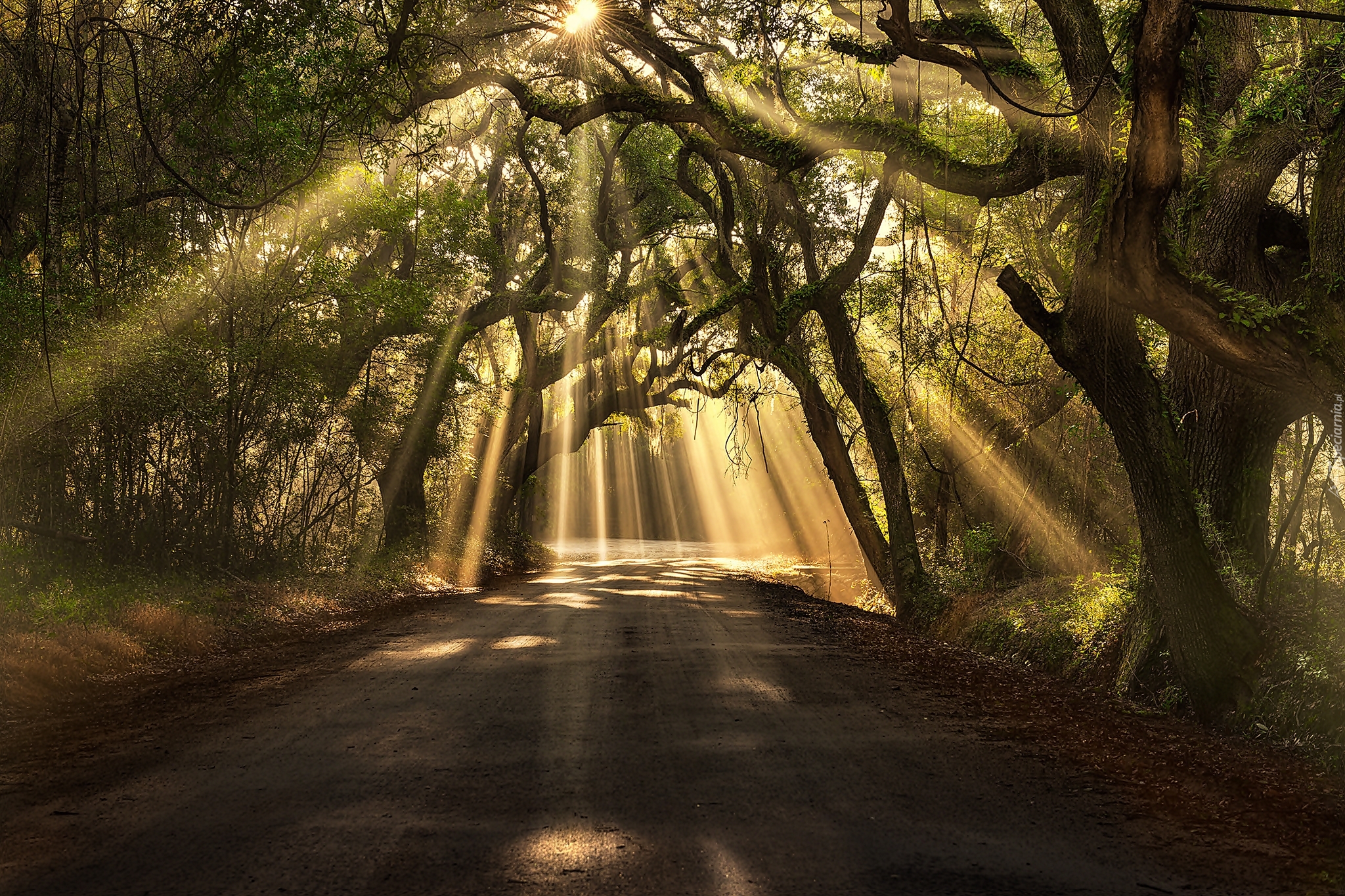 Edytor tapety: Droga, Drzewa, Promienie Słońca