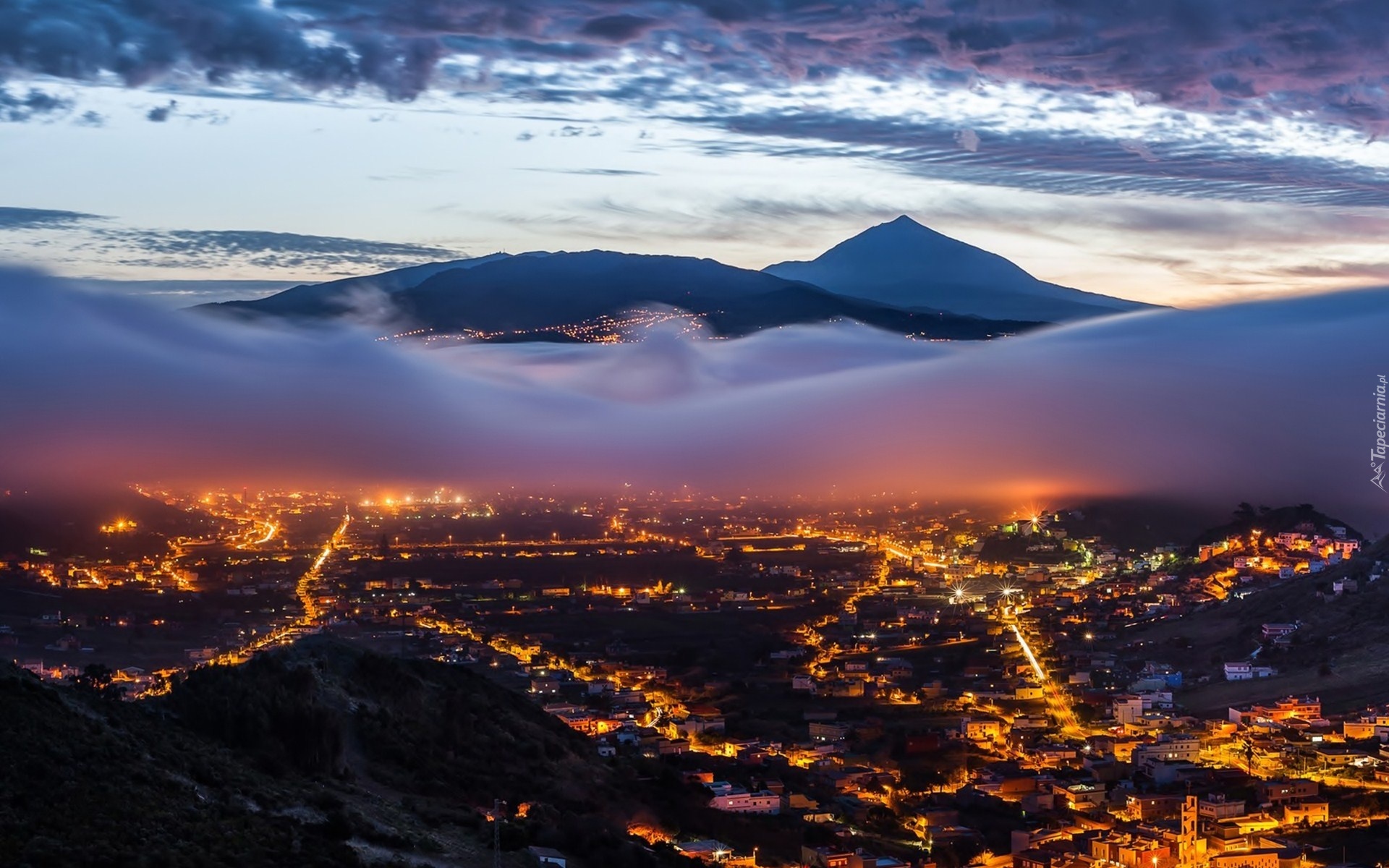 Edytor tapety: Góry, Chmura, Miasto, Światła