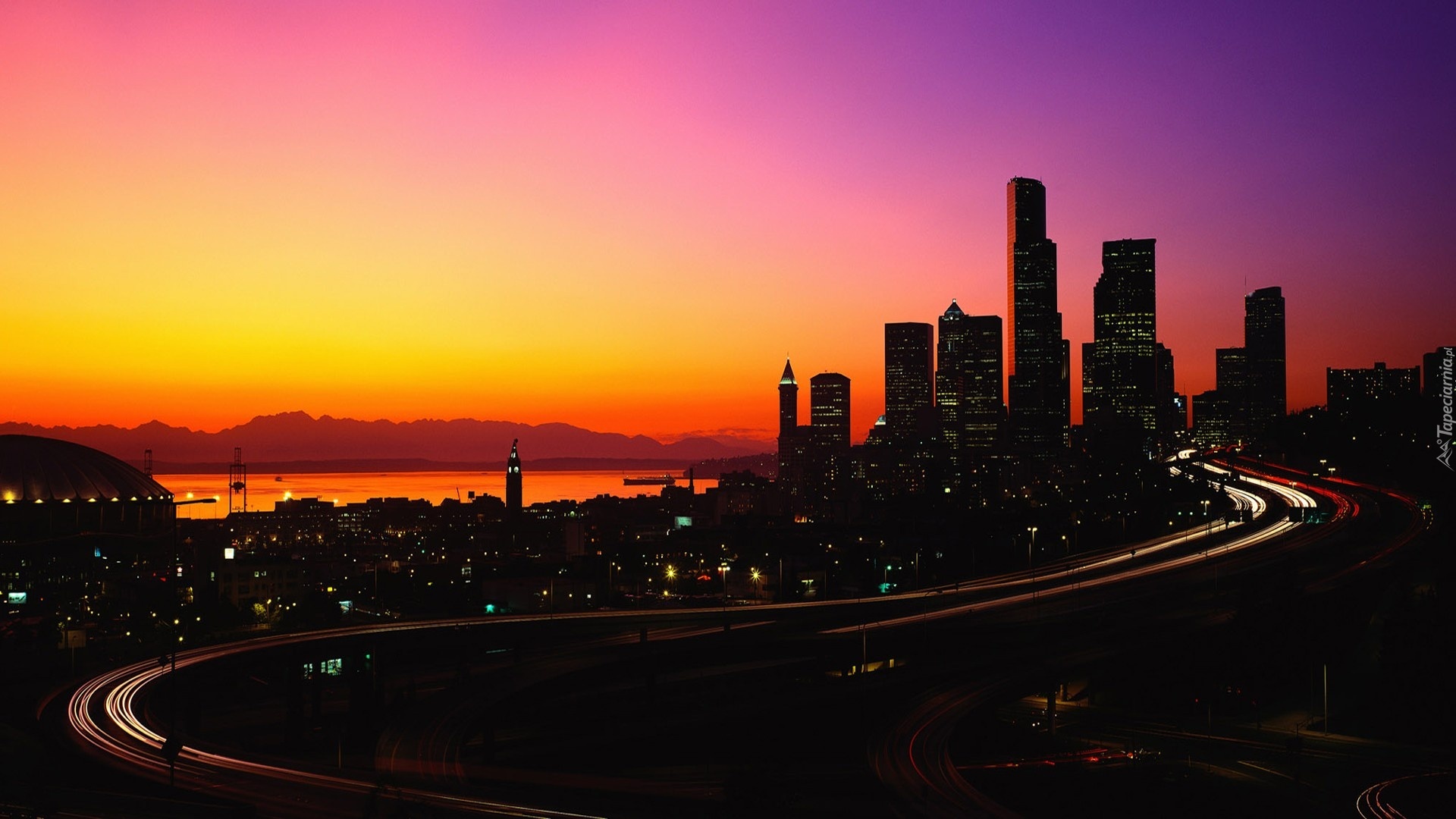 Edytor tapety: Zachód Słońca, Miasto, Droga