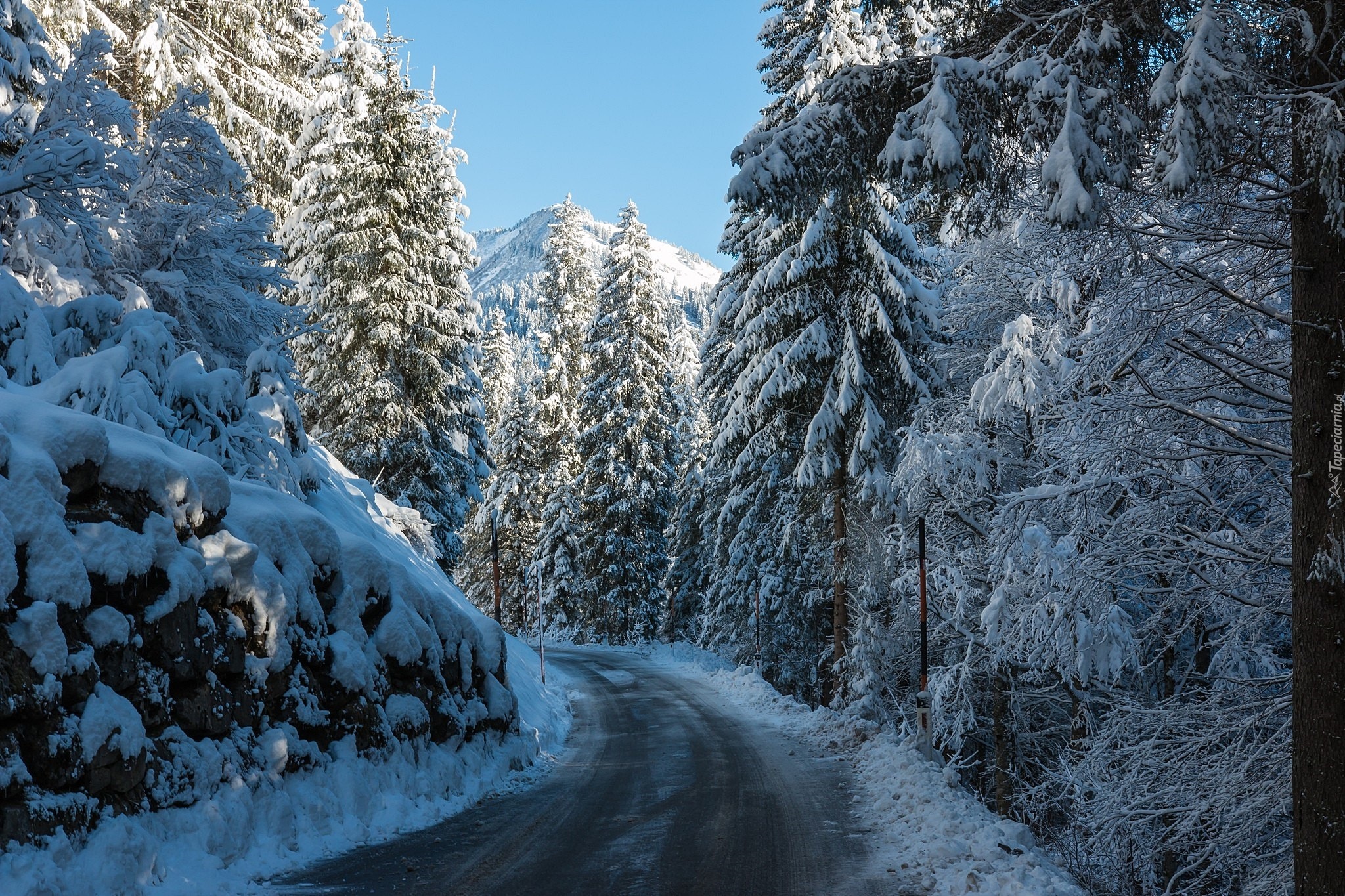 Edytor tapety: Zima, Droga, Zakręt, Las