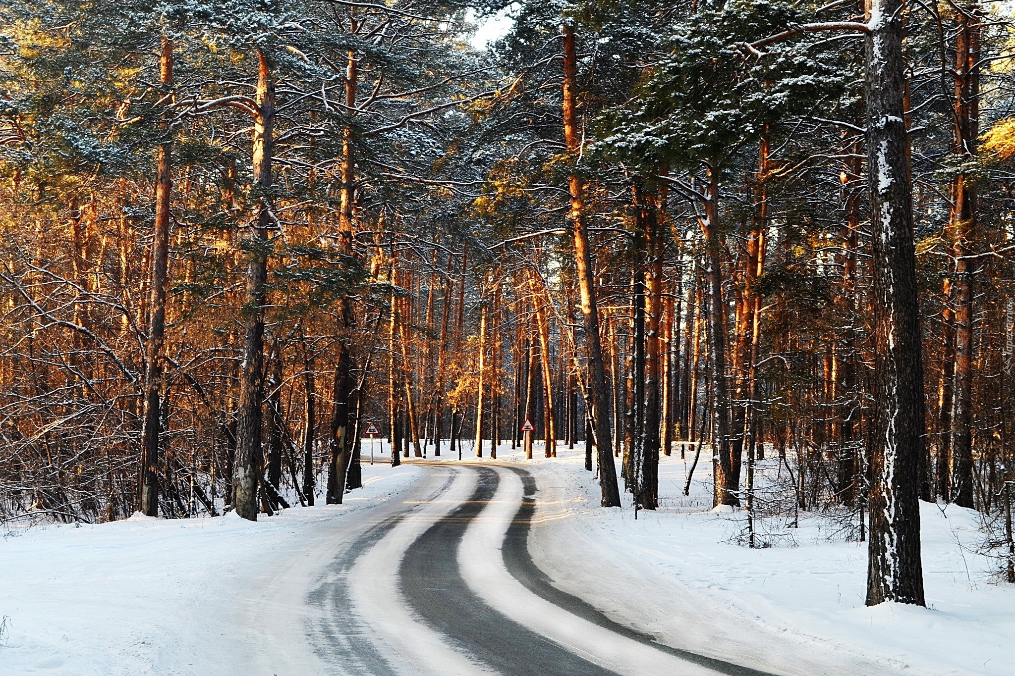 Edytor tapety: Zima, Droga, Las, Przebijające Światło
