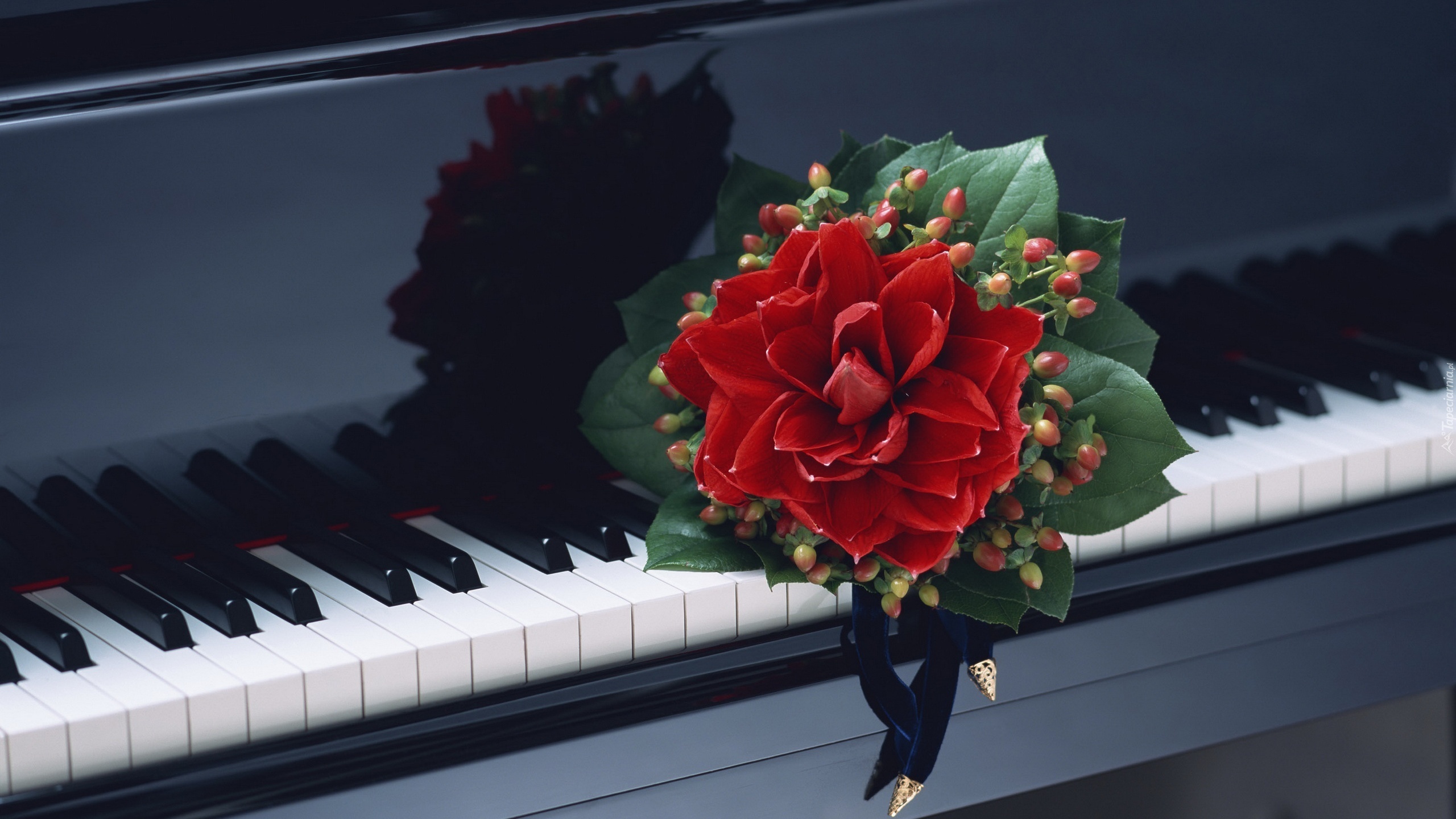 Edytor tapety: Fortepian, Bukiet, Czerwonych, Kwiatów